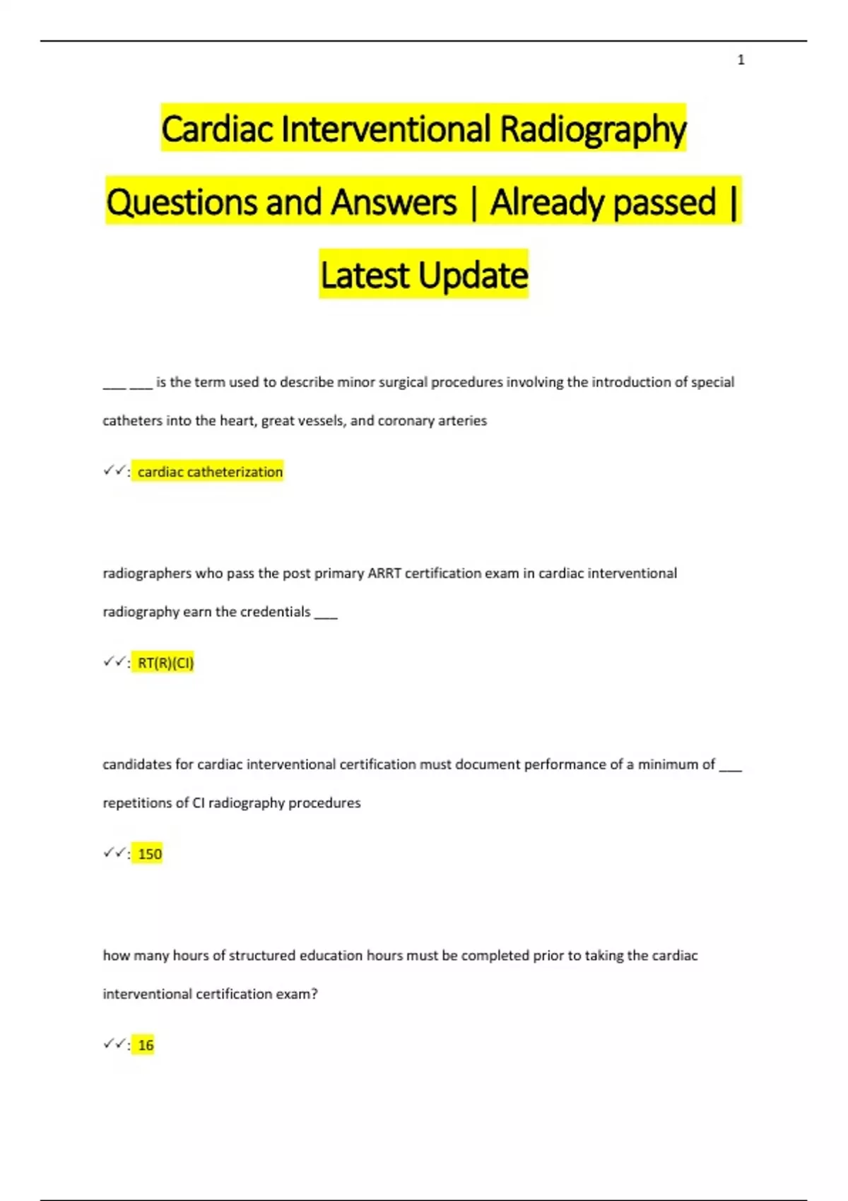 Cardiac Interventional Radiography Questions and Answers | Already passed | Latest Update