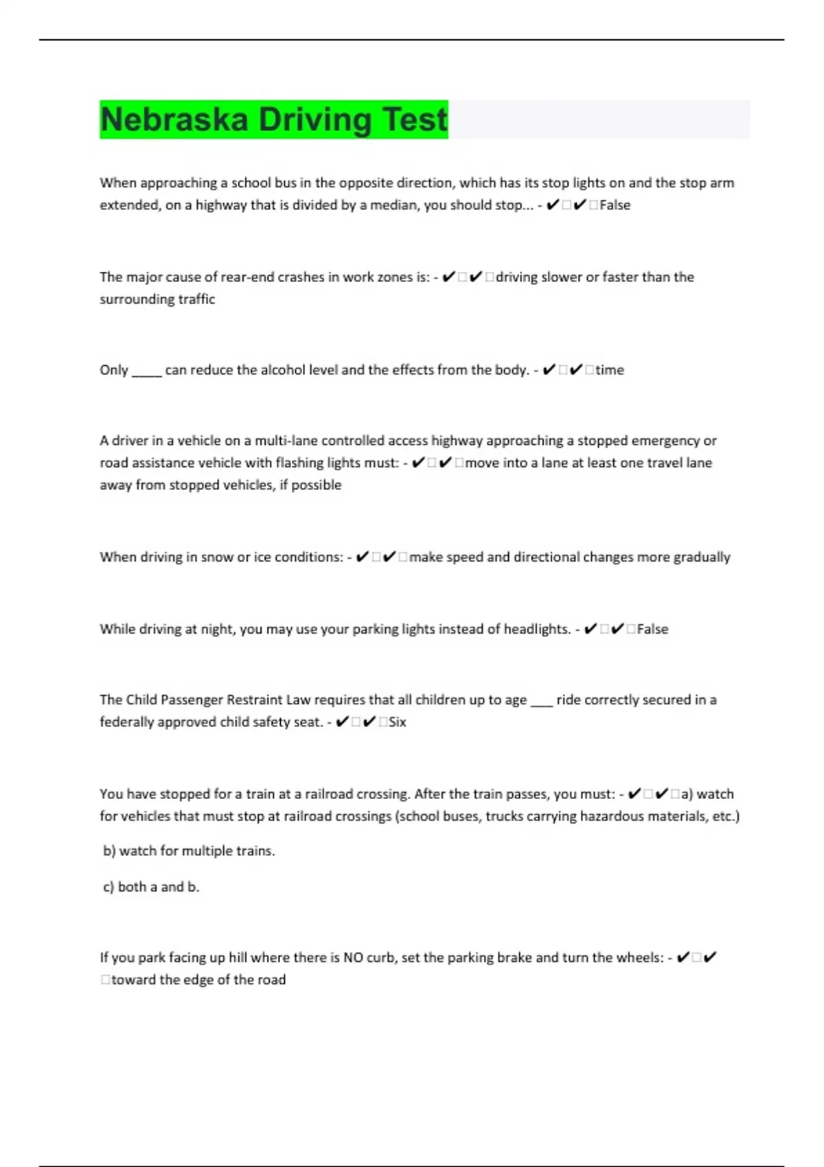 Nebraska Driving 60 TEST CORRECTLY SOLVED QUESTIONS|SCORE A+