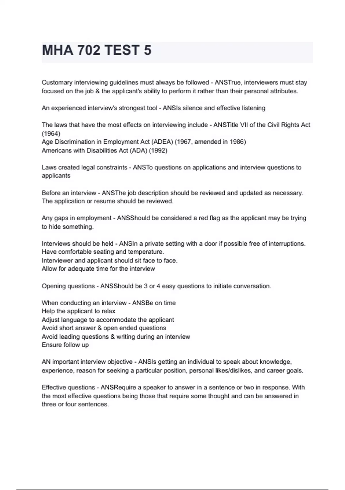MHA 702 TEST 5 questions and answers already graded A+ 2024/2025