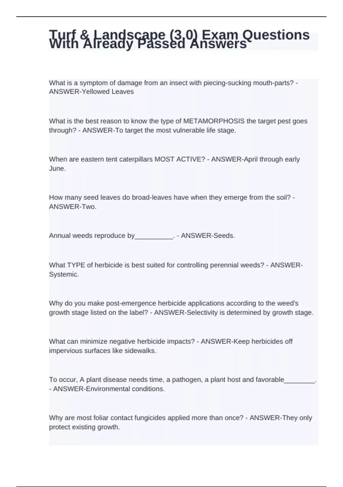 Turf & Landscape (3.0) Exam Questions With Already Passed Answers