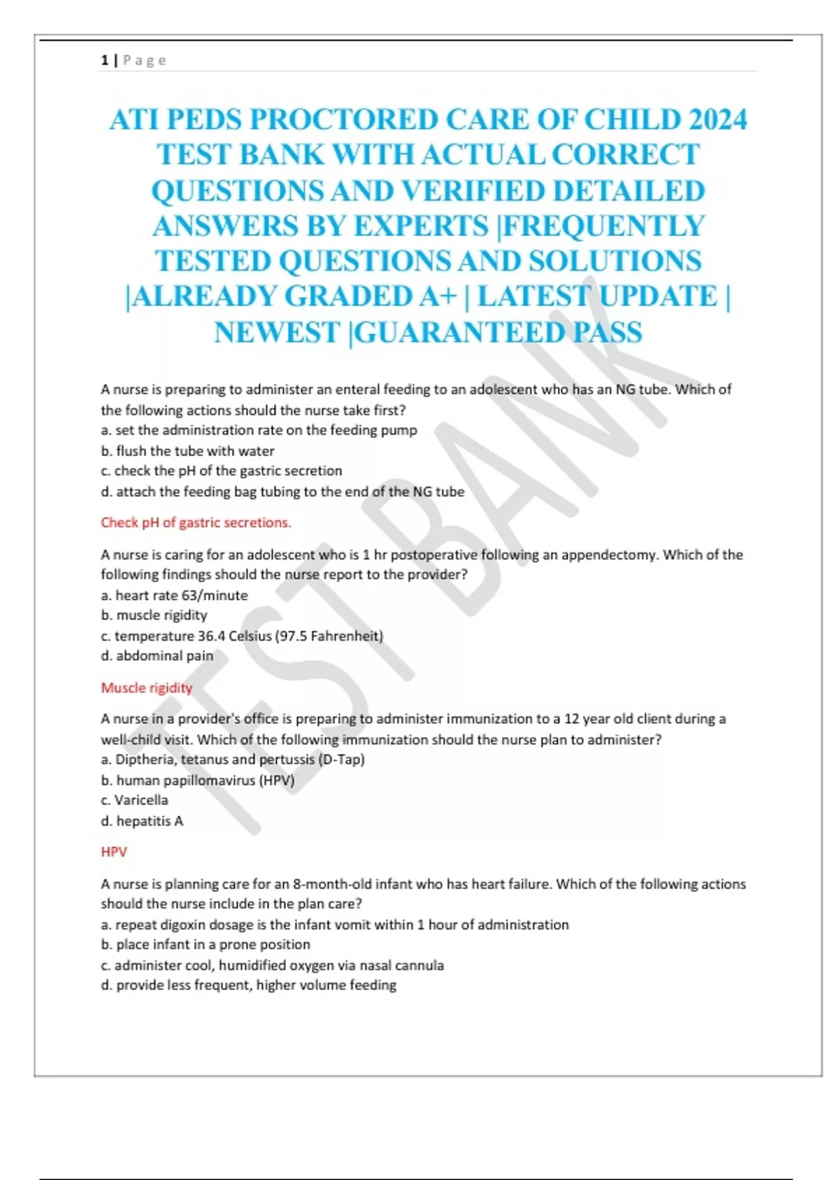 ATI PEDS PROCTORED CARE OF CHILD 2024 TEST BANK WITH ACTUAL CORRECT QUESTIONS AND VERIFIED DETAILED ANSWERS BY EXPERTS |FREQUENTLY TESTED QUESTIONS AND SOLUTIONS |ALREADY GRADED A+ | LATEST UPDATE | NEWEST |GUARANTEED PASS