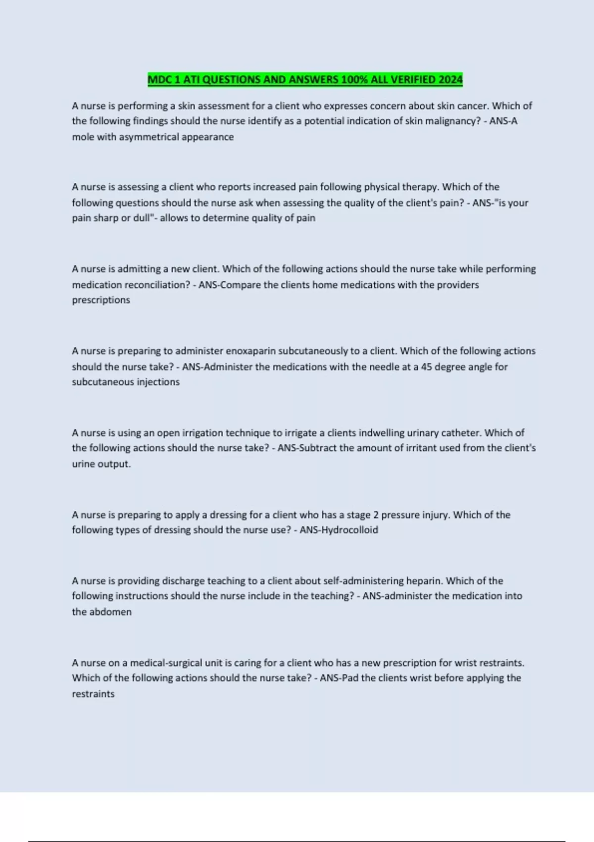 MDC 1 ATI QUESTIONS AND ANSWERS 100% ALL VERIFIED 2024