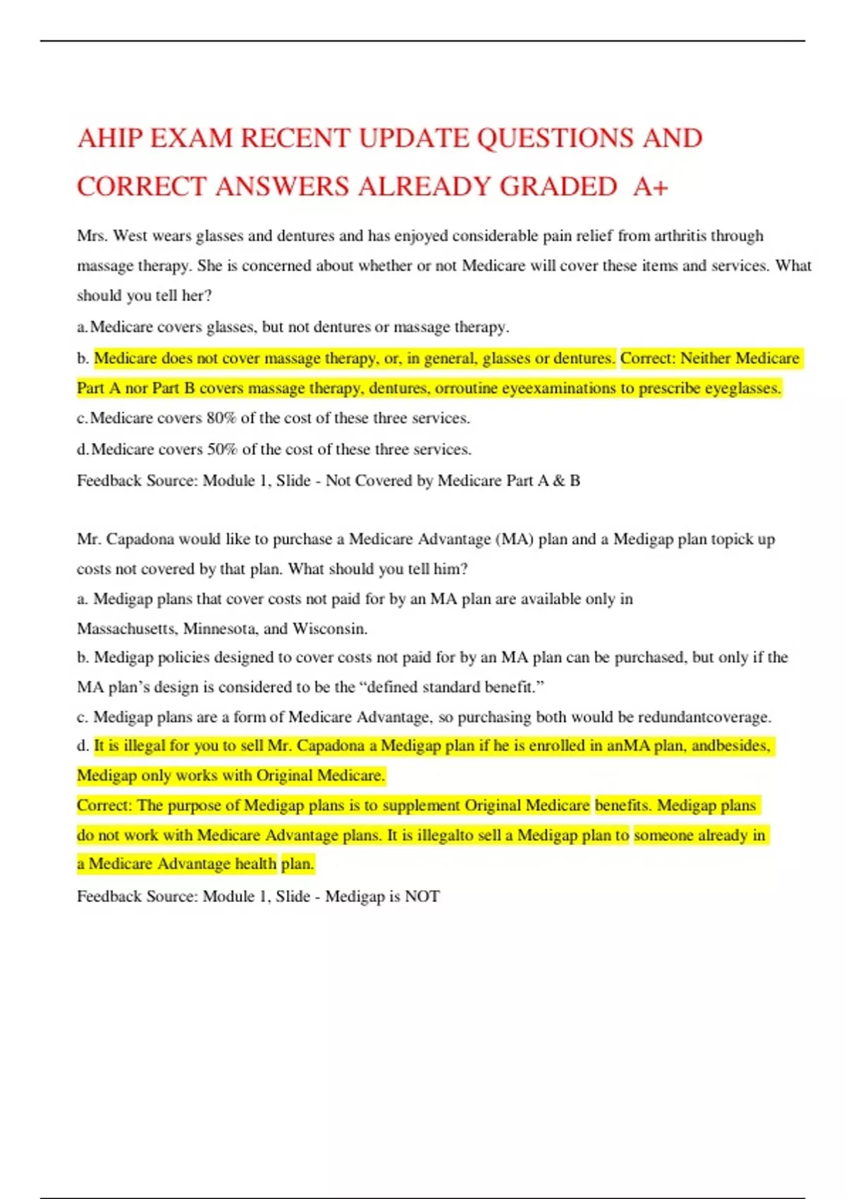 AHIP EXAM RECENT UPDATE QUESTIONS AND CORRECT ANSWERS ALREADY GRADED A+AHIP EXAM RECENT UPDATE QUESTIONS AND CORRECT ANSWERS ALREADY GRADED A+