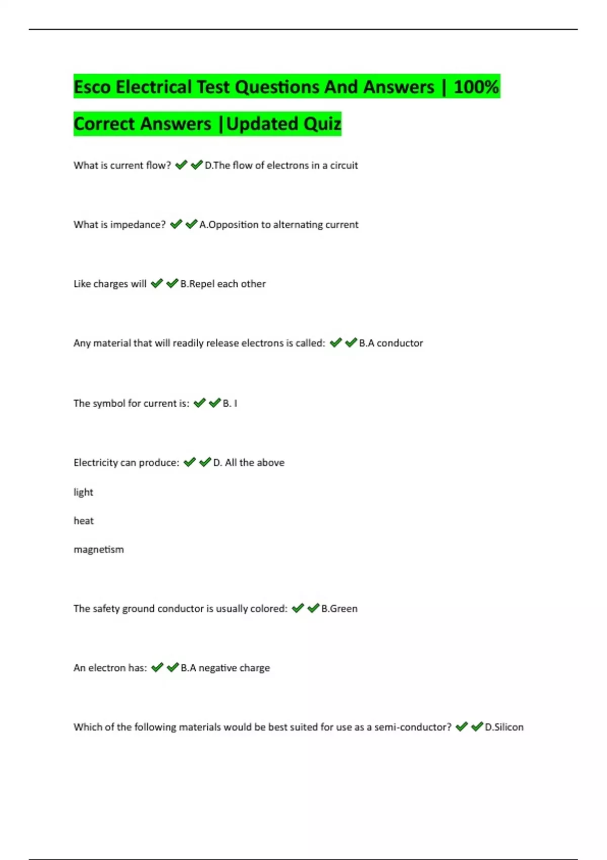Esco Electrical Test Questions And Answers | 100% Correct Answers |Updated Quiz