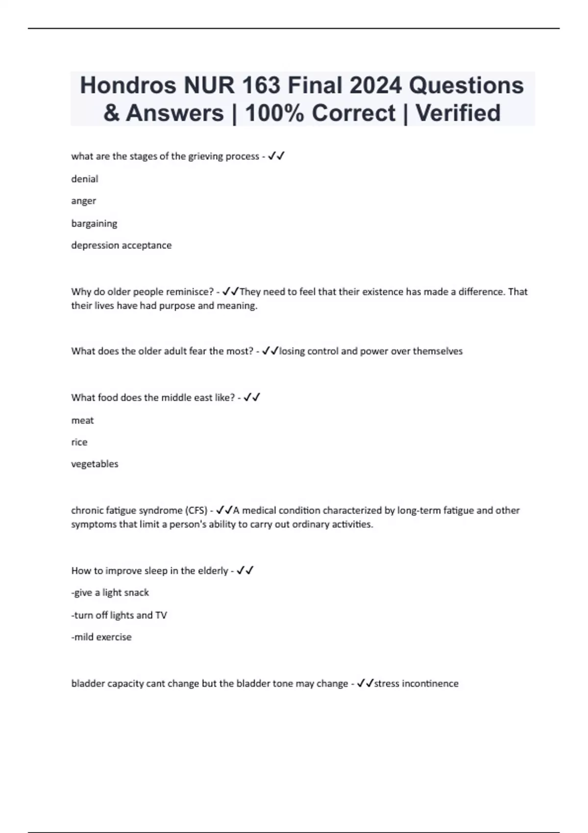 Hondros NUR 163 Final 2024 Questions & Answers | 100% Correct | Verified