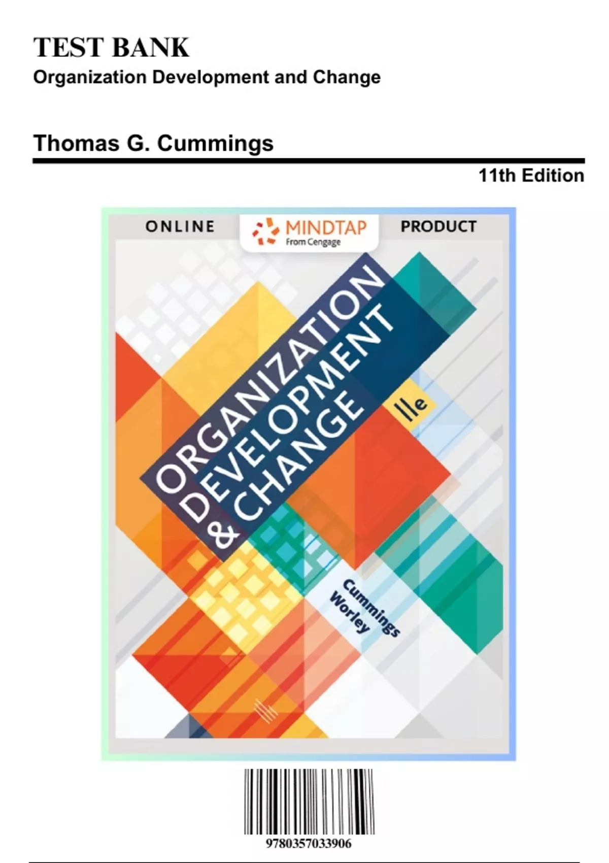 Test Bank: Organization Development and Change 11th Edition by Thomas G. Cummings - Ch. 1-21, 9780357033906, with Rationales