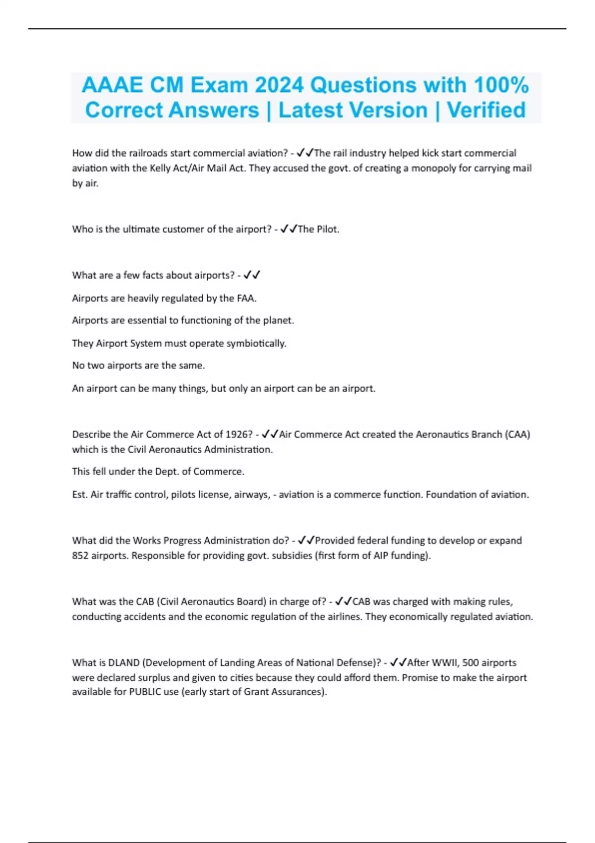 AAAE CM Exam 2024 Questions with 100% Correct Answers | Latest Version | Verified