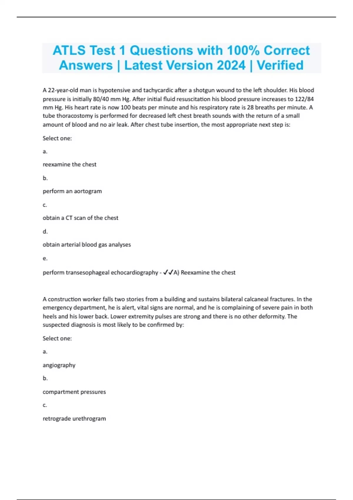 ATLS Test 1 Questions with 100% Correct Answers | Latest Version 2024 | Verified