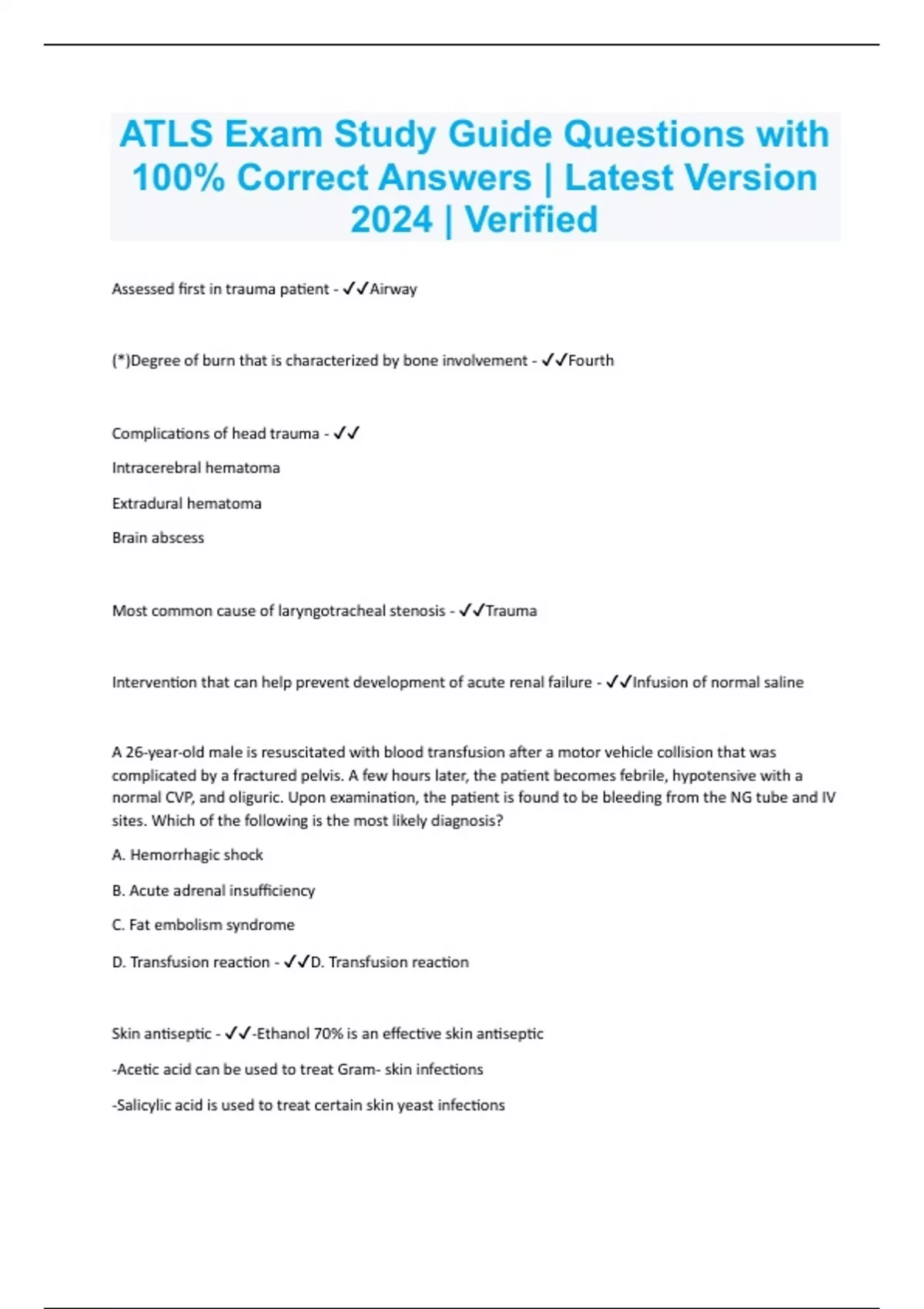 ATLS Bundled Resources with Complete Solution | Expert Verified 2024/2025 | Guaranteed Success