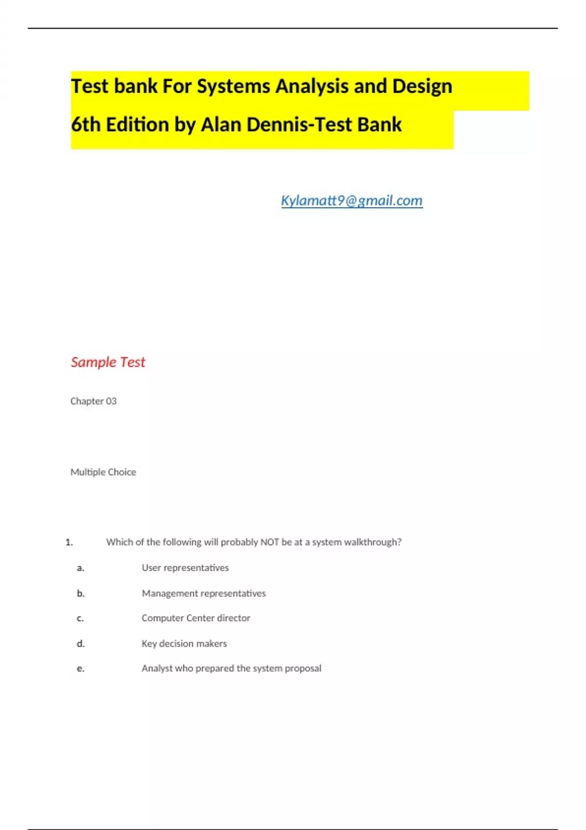 Test bank For Systems Analysis and Design