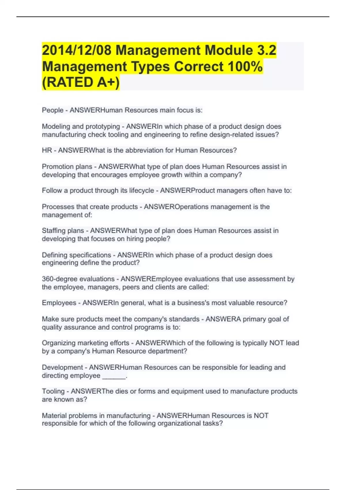 2014/12/08 Management Module 3.2 Management Types Correct 100%(RATED A+)