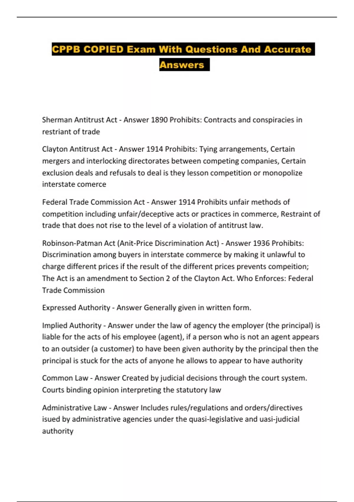 CPPB COPIED Exam With Questions And Accurate Answers ...