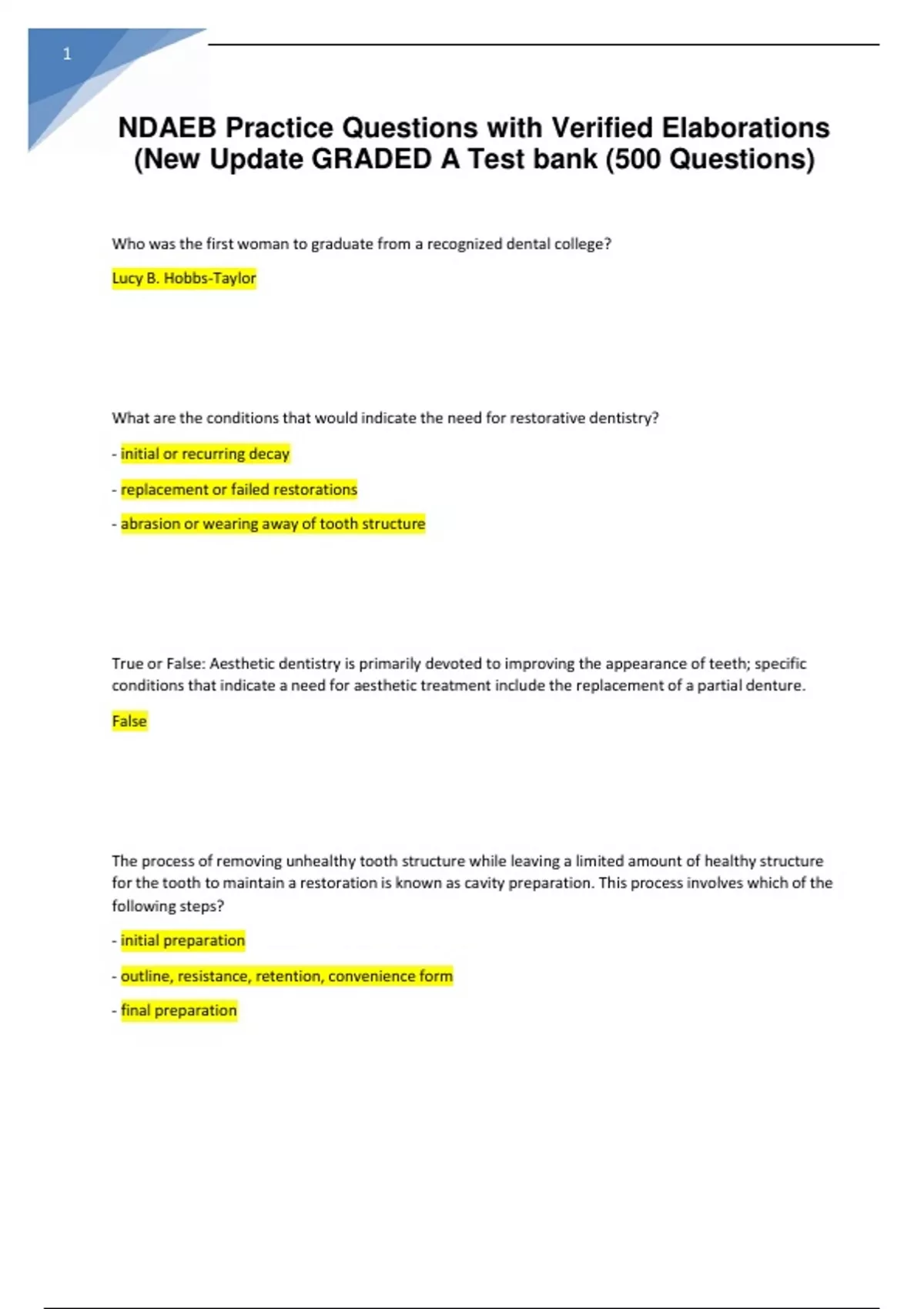 NDAEB Practice Questions with Verified Elaborations (New Update GRADED A Test bank (500 Questions)/NDAEB Practice Questions with Verified Elaborations (New Update GRADED A Test bank (500 Questions)/NDAEB Practice Questions with Verified Elaborations (New Update GRADED A Test bank (500 Questions)/NDAEB Practice Questions with Verified Elaborations (New Update GRADED A Test bank (500 Questions)/NDAEB Practice Questions with Verified Elaborations (New Update GRADED A Test bank (500 Questions)