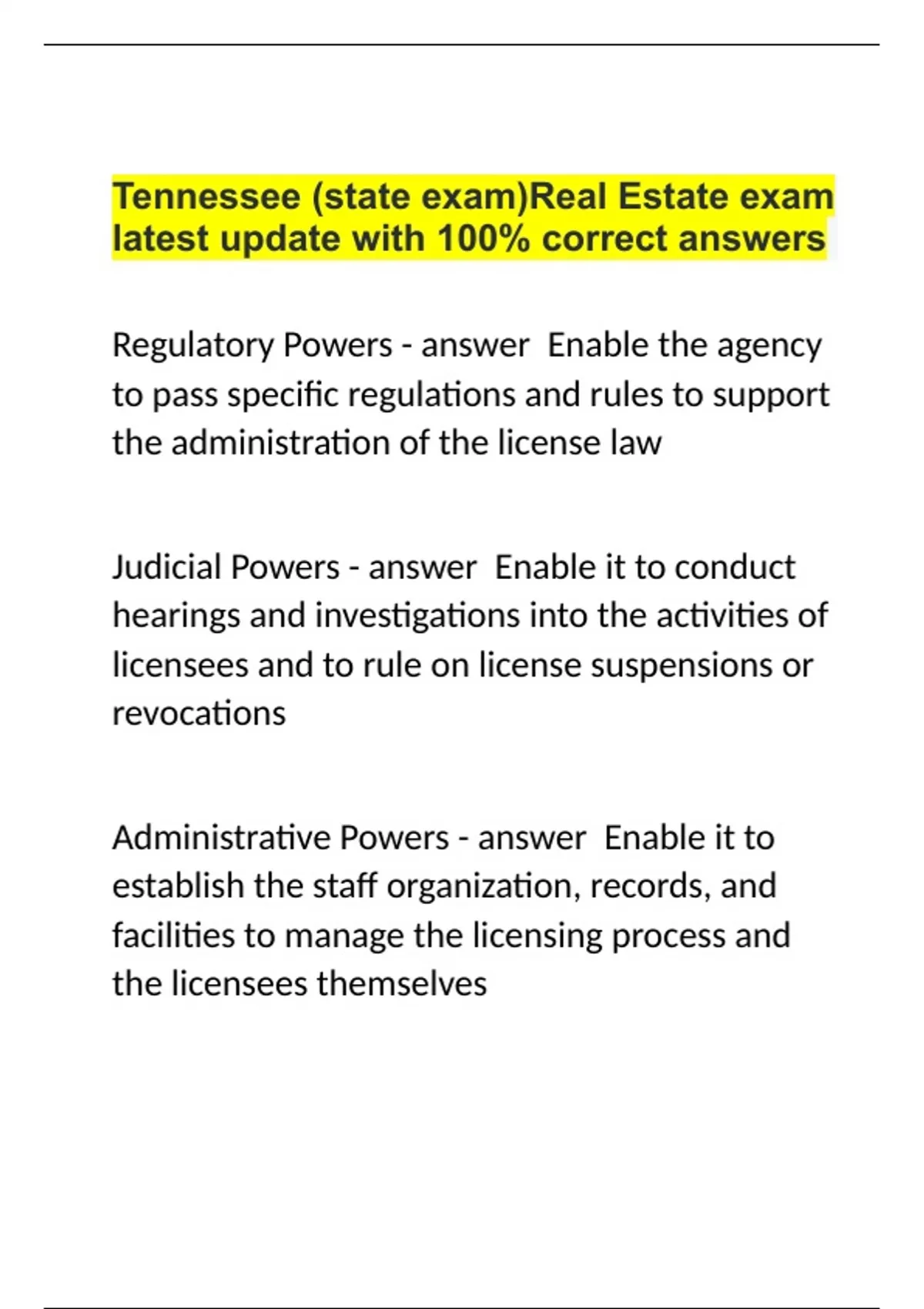 Tennessee (state exam)Real Estate exam latest update with 100% correct answers