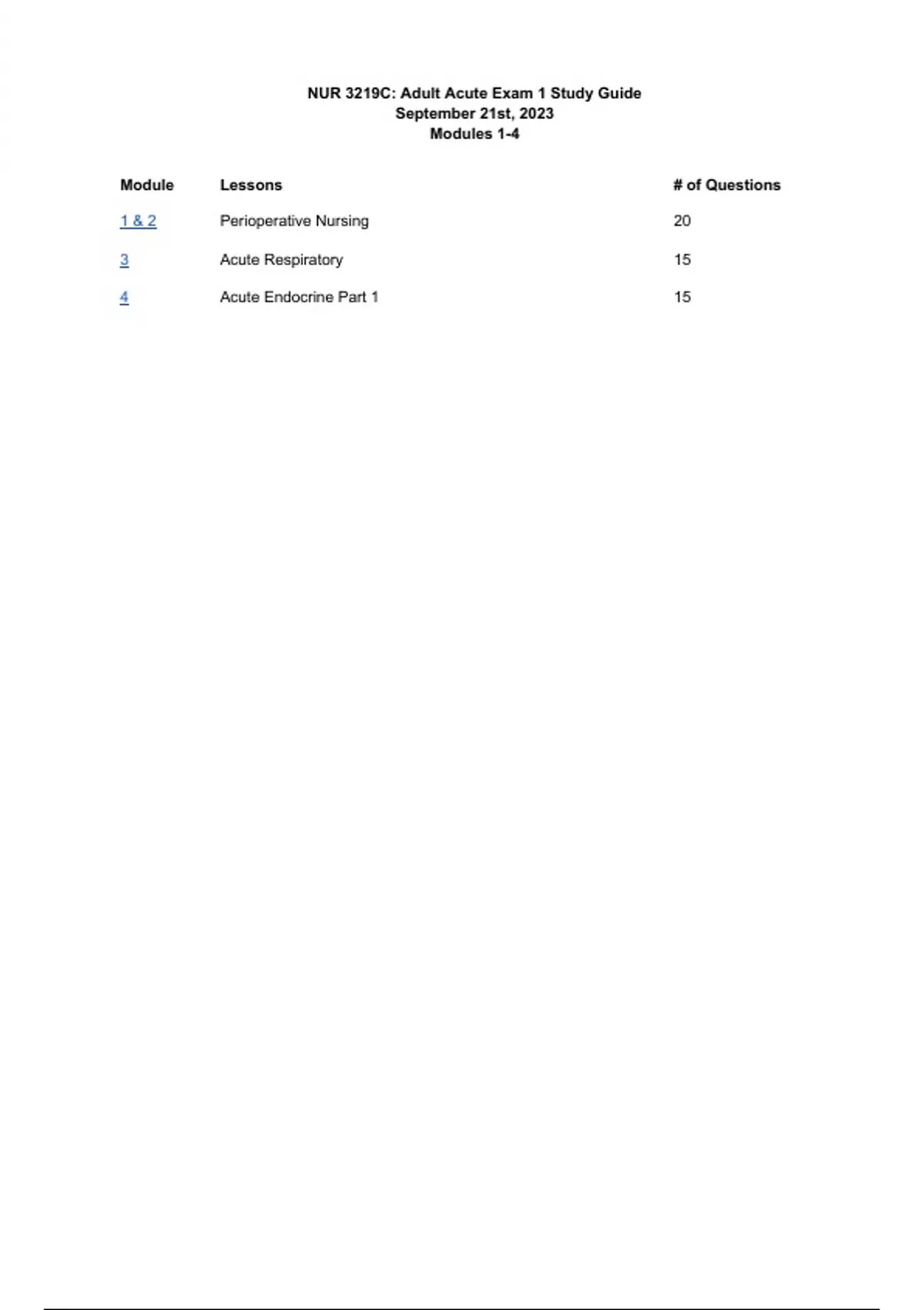 Summary NUR3219C Adult Acute Exam 1 Comprehensive Notes Modules 1-4