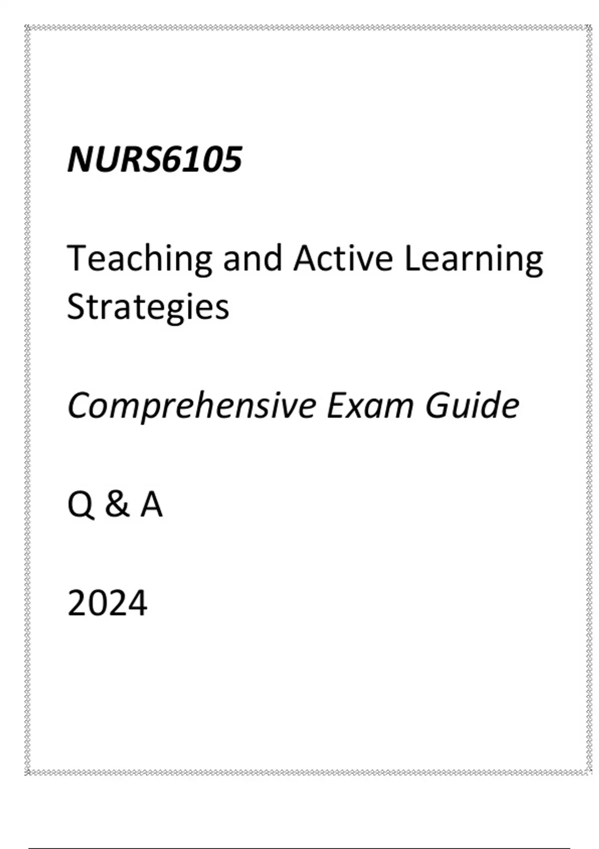 (Capella) NURS6105 Teaching & Active Learning Strategies Comprehensive Exam Guide Q & A 2024(Capella) NURS6105 Teaching & Active Learning Strategies Comprehensive Exam Guide Q & A 2024