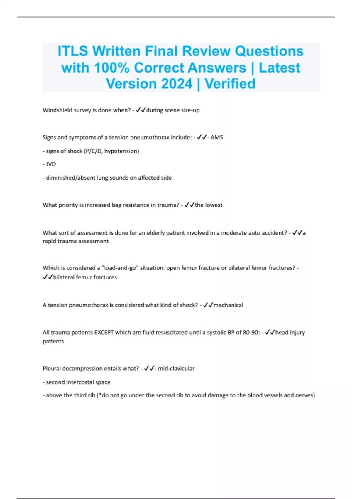 ITLS Written Final Review Questions with 100% Correct Answers | Latest Version 2024 | Verified