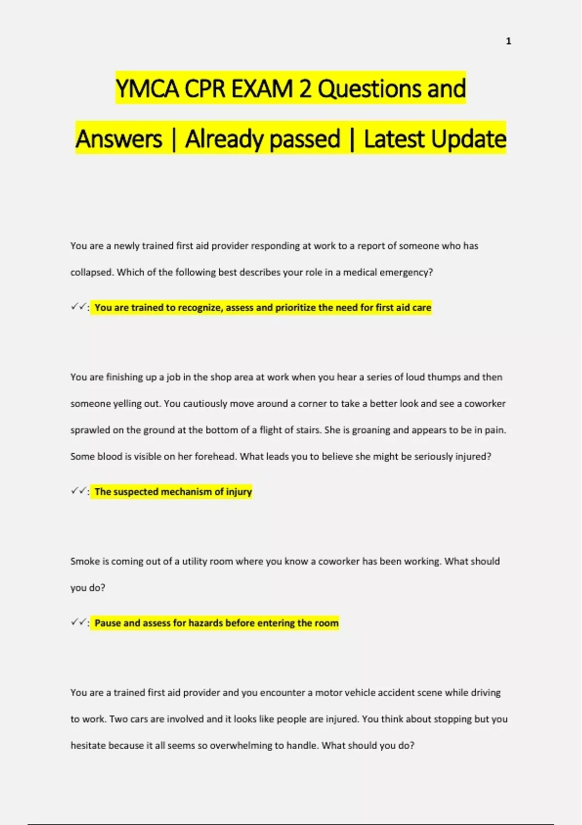 YMCA CPR EXAM 2 Questions and Answers | Already passed | Latest Update