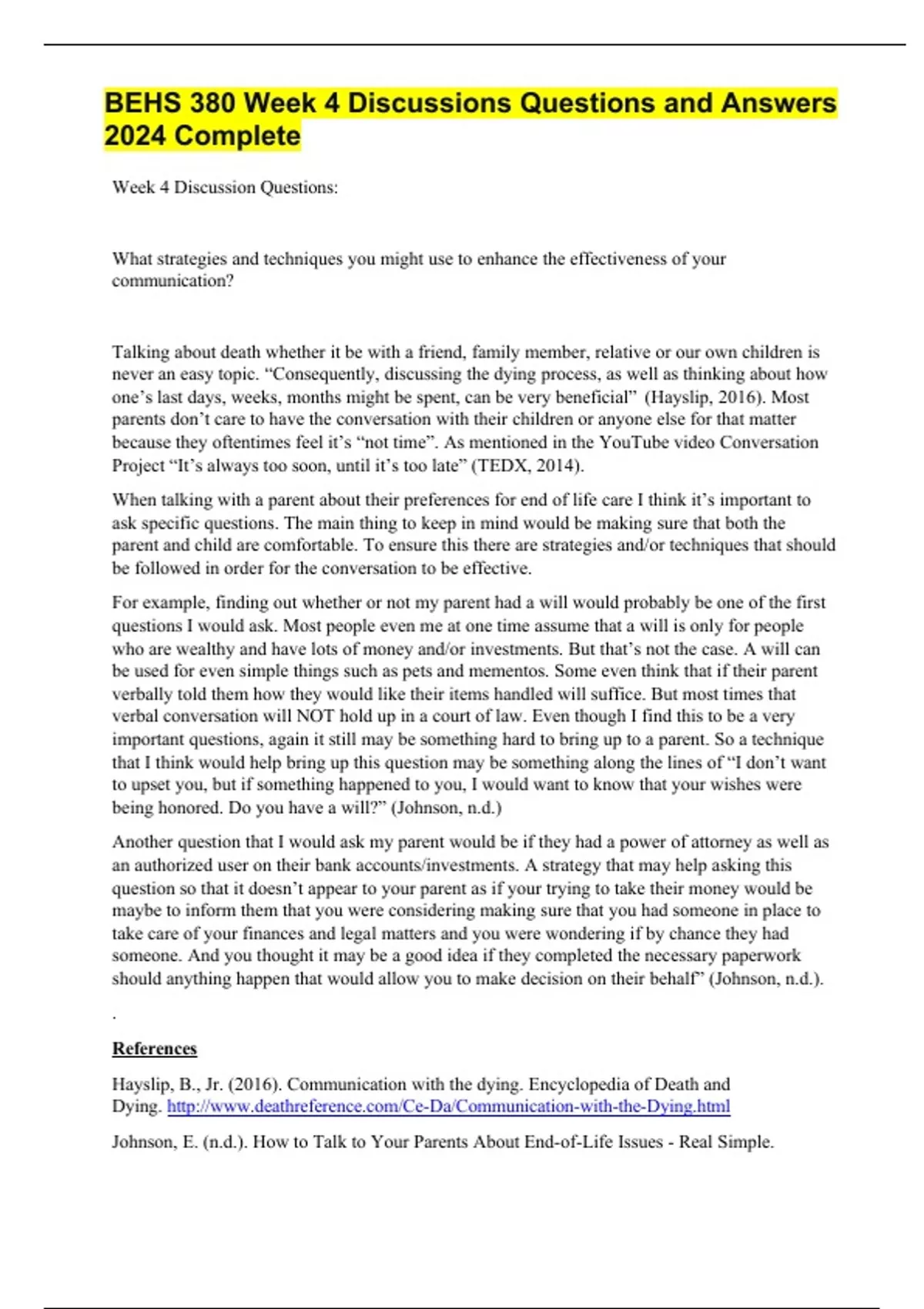 BEHS 380 Week 4 Discussions Questions and Answers 2024 Complete