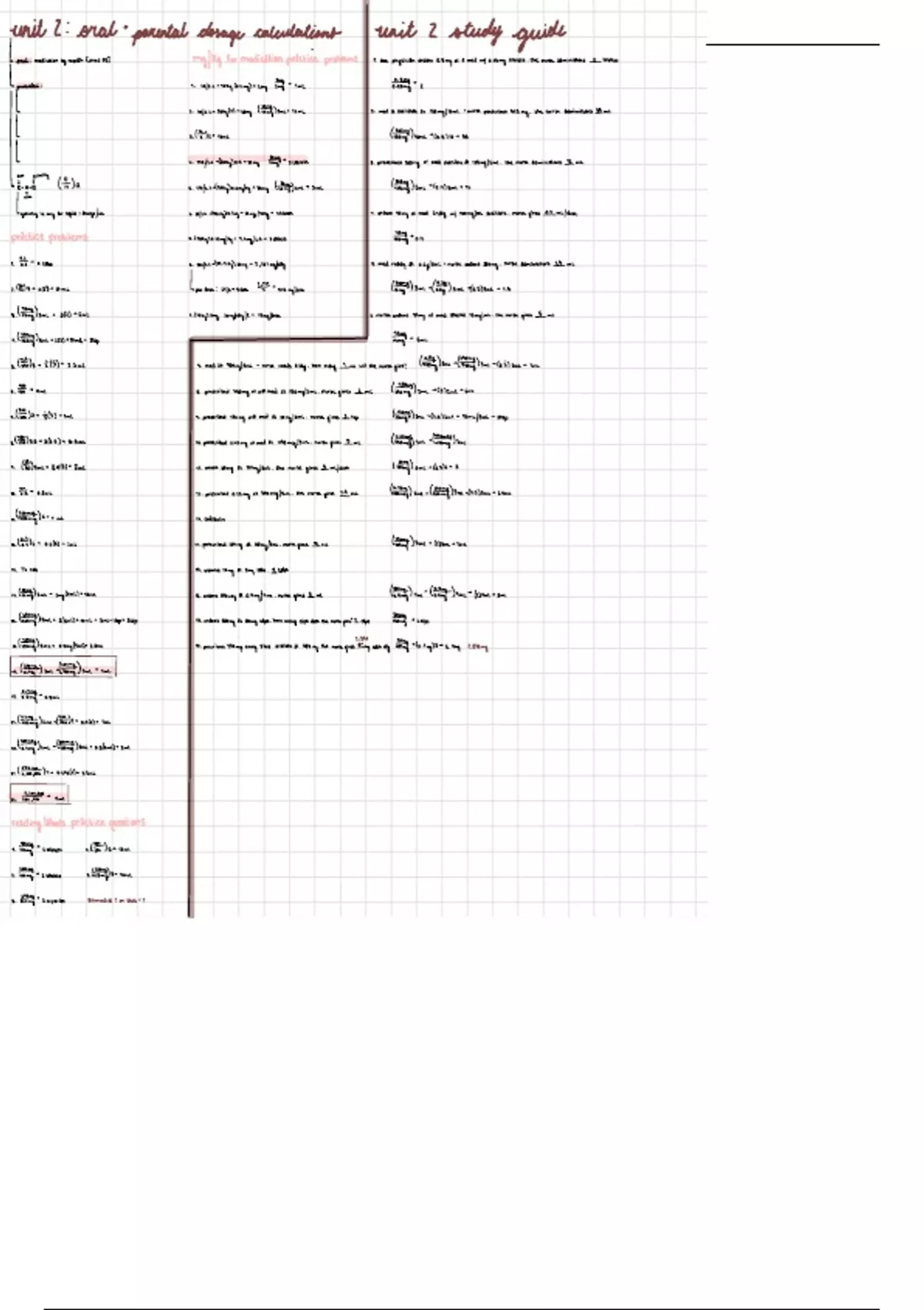 Unit 2 notes and study guide for dosage calculations