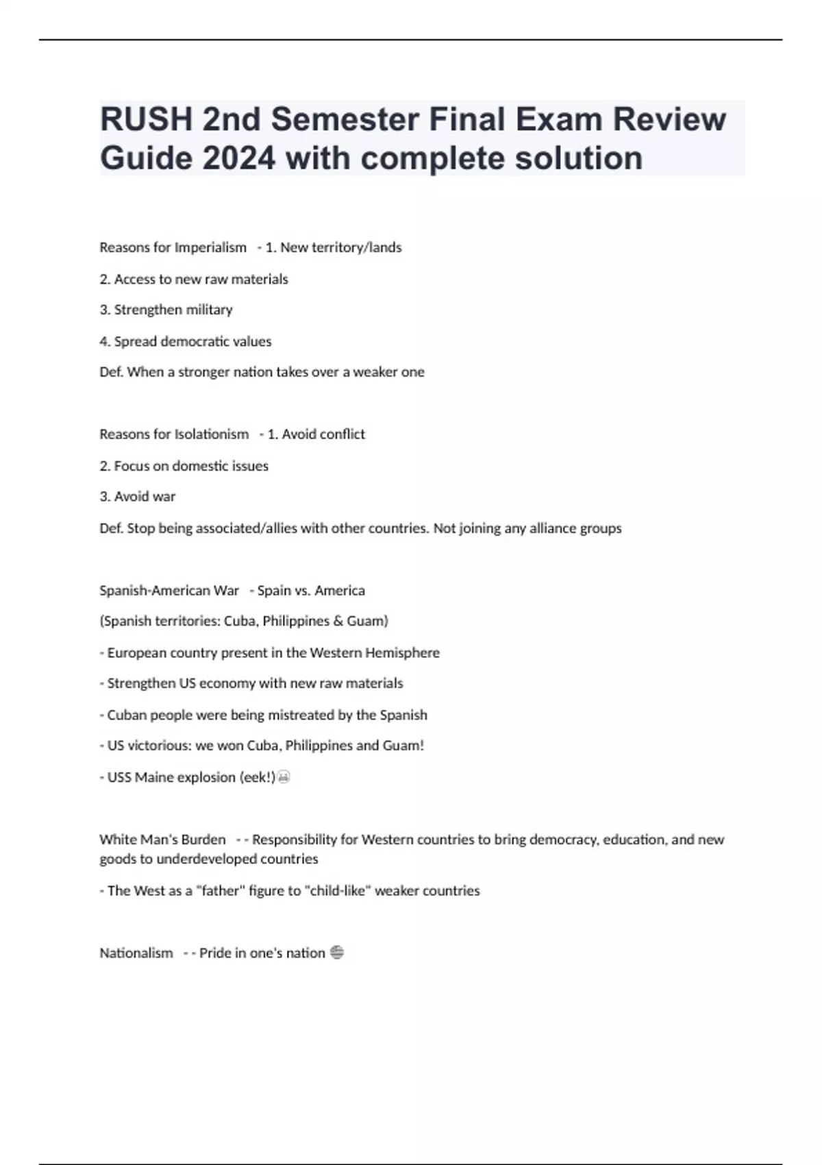 RUSH 2nd Semester Final Exam Review Guide 2024 with complete solution