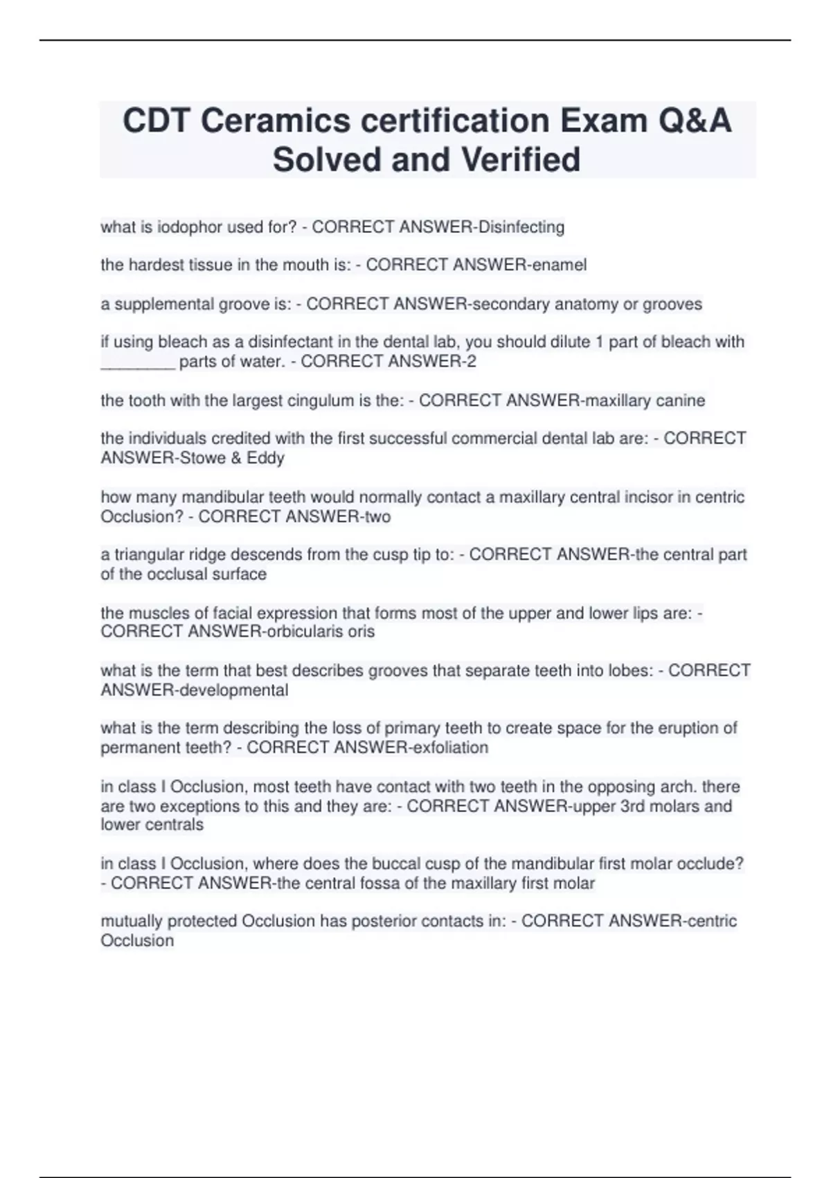 CDT Ceramics certification Exam Q&A Solved and Verified