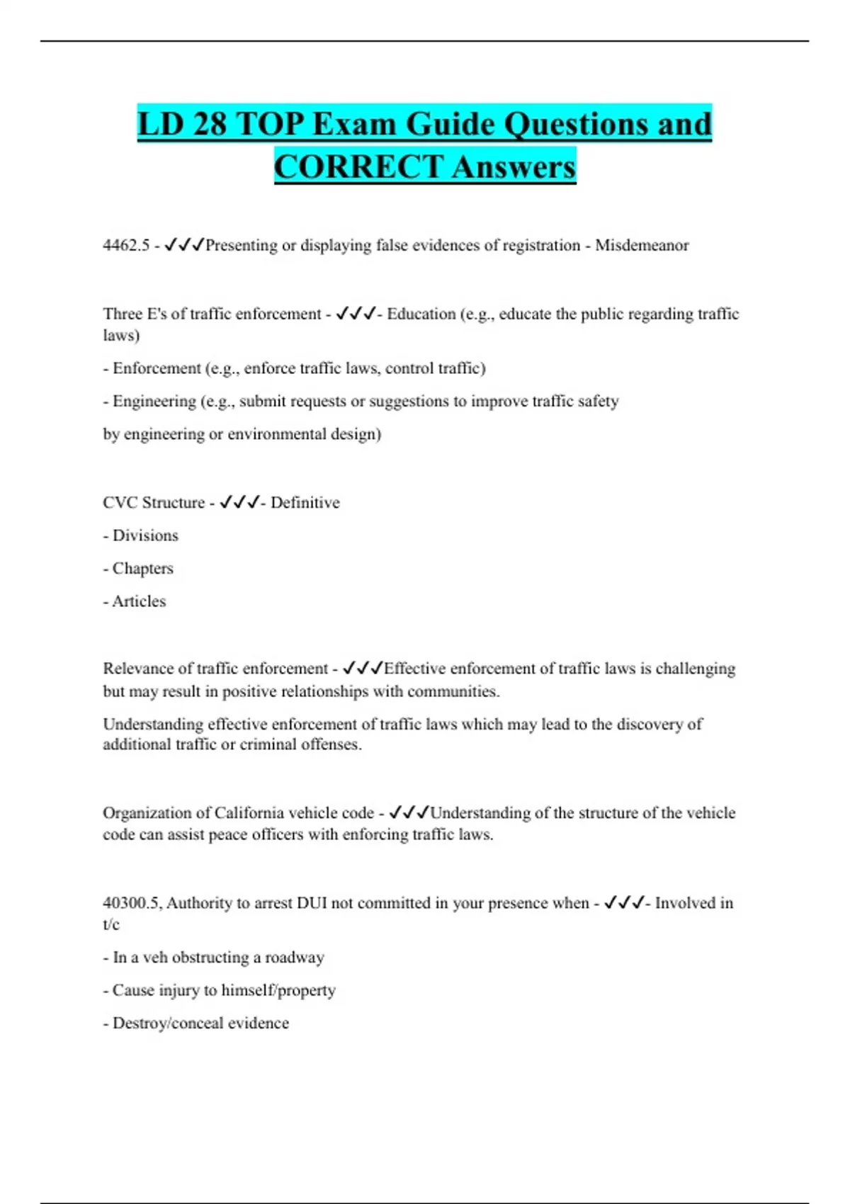LD 28 TOP Exam Guide Questions and CORRECT Answers