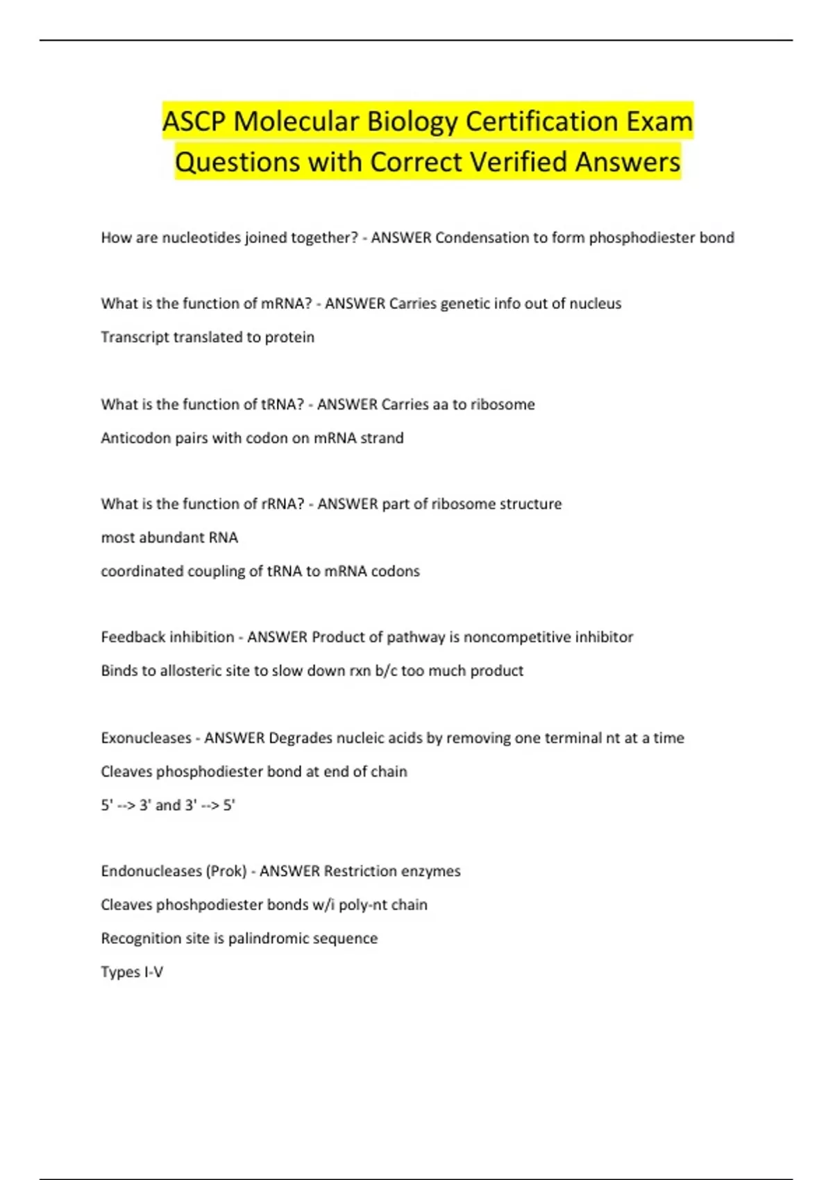 ASCP Molecular Biology Certification Exam Questions with Correct Verified Answers