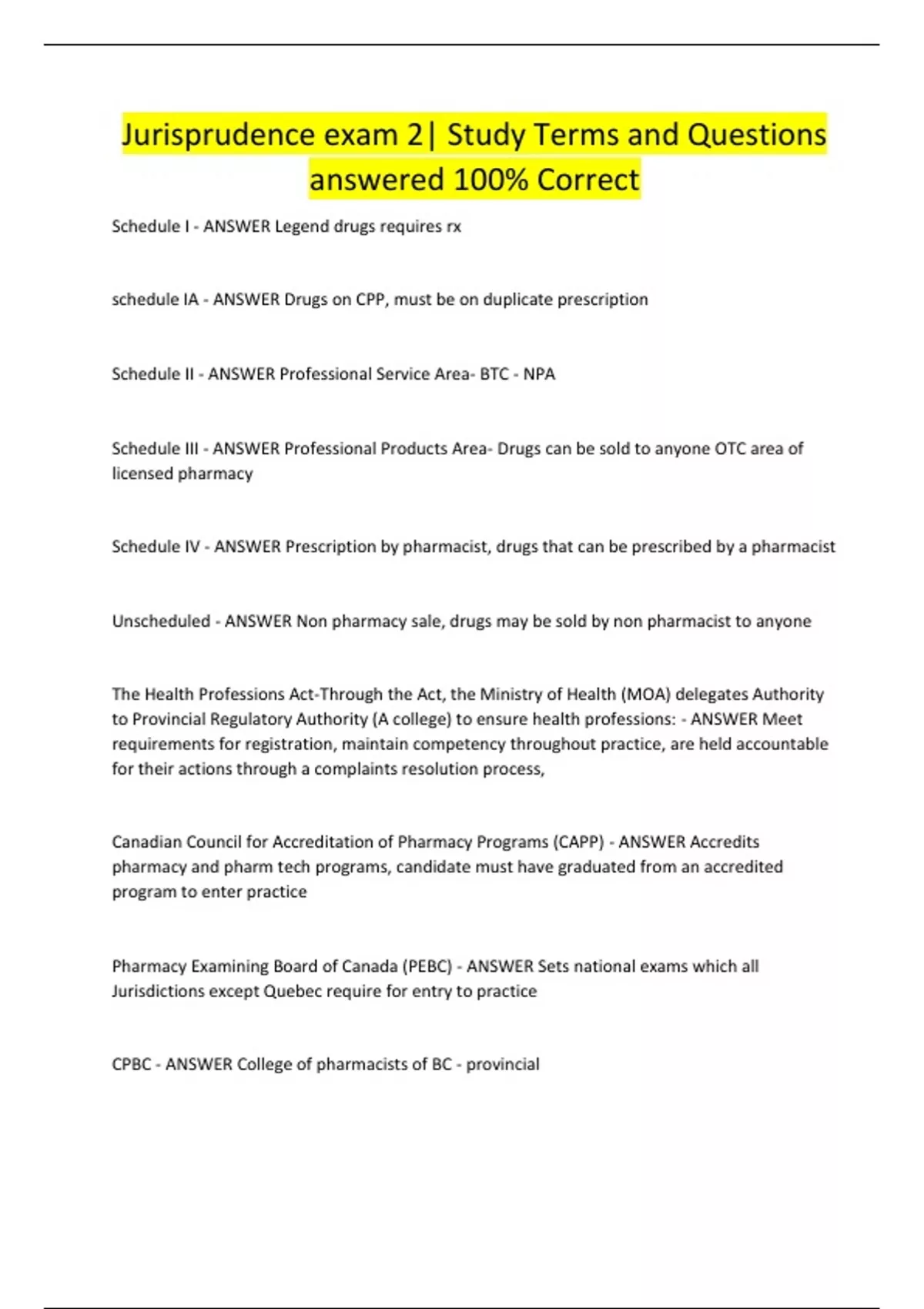 Jurisprudence exam 2| Study Terms and Questions answered 100% Correc