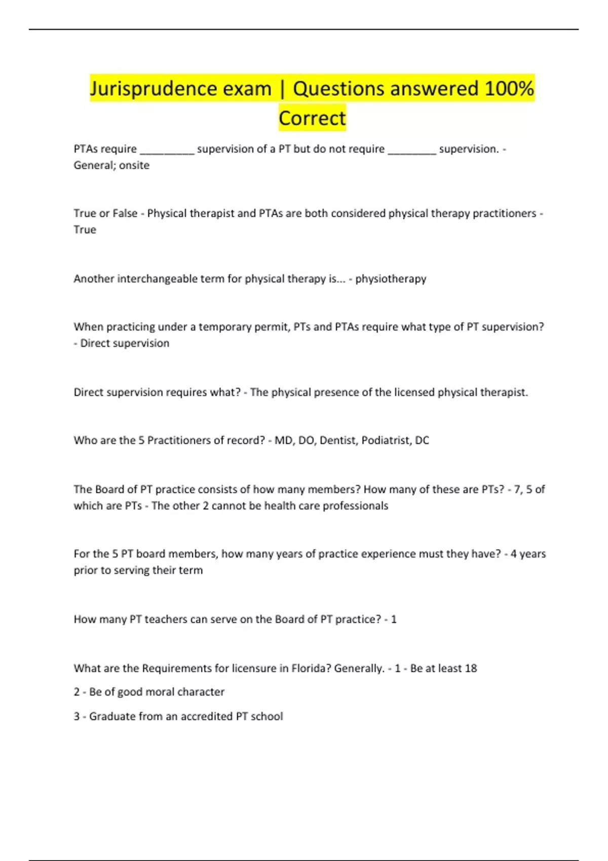 Jurisprudence exam | Questions answered 100% Correct