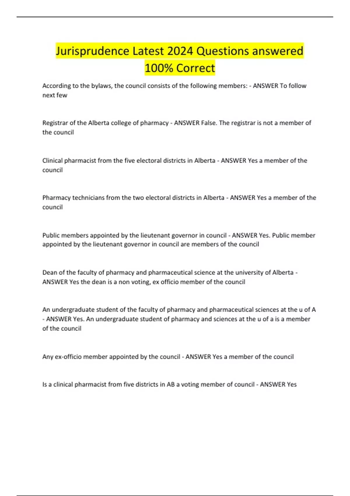 According to the bylaws, the council consists of the following members: - ANSWER To follow next few Registrar of the Alberta college of pharmacy - ANSWER False. The registrar is not a member of the council Clinical pharmacist from the five electoral districts in Alberta - ANSWER Yes a member of the council