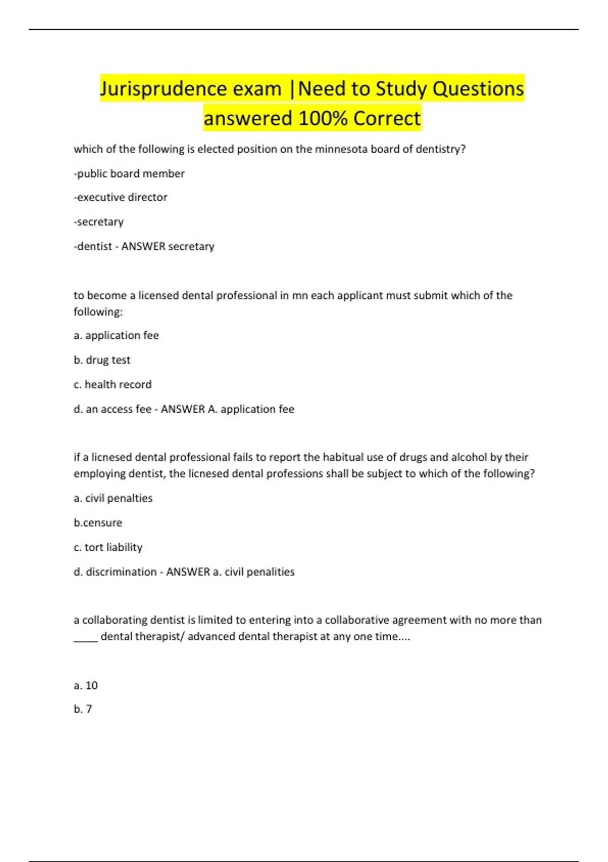 Jurisprudence exam |Need to Study Questions answered 100% Correct