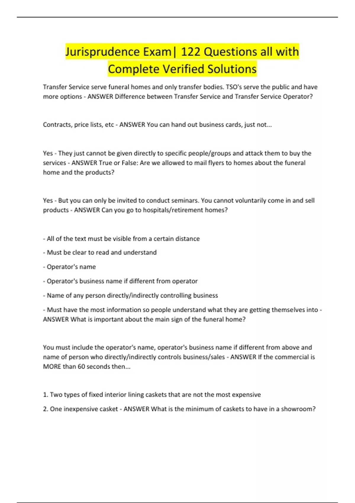 Transfer Service serve funeral homes and only transfer bodies. TSO's serve the public and have more options - ANSWER Difference between Transfer Service and Transfer Service Operator? Contracts, price lists, etc - ANSWER You can hand out business cards, just not... Yes - They just cannot be given directly to specific people/groups and attack them to buy the services - ANSWER True or False: Are we allowed to mail flyers to homes about the funeral home and the products?