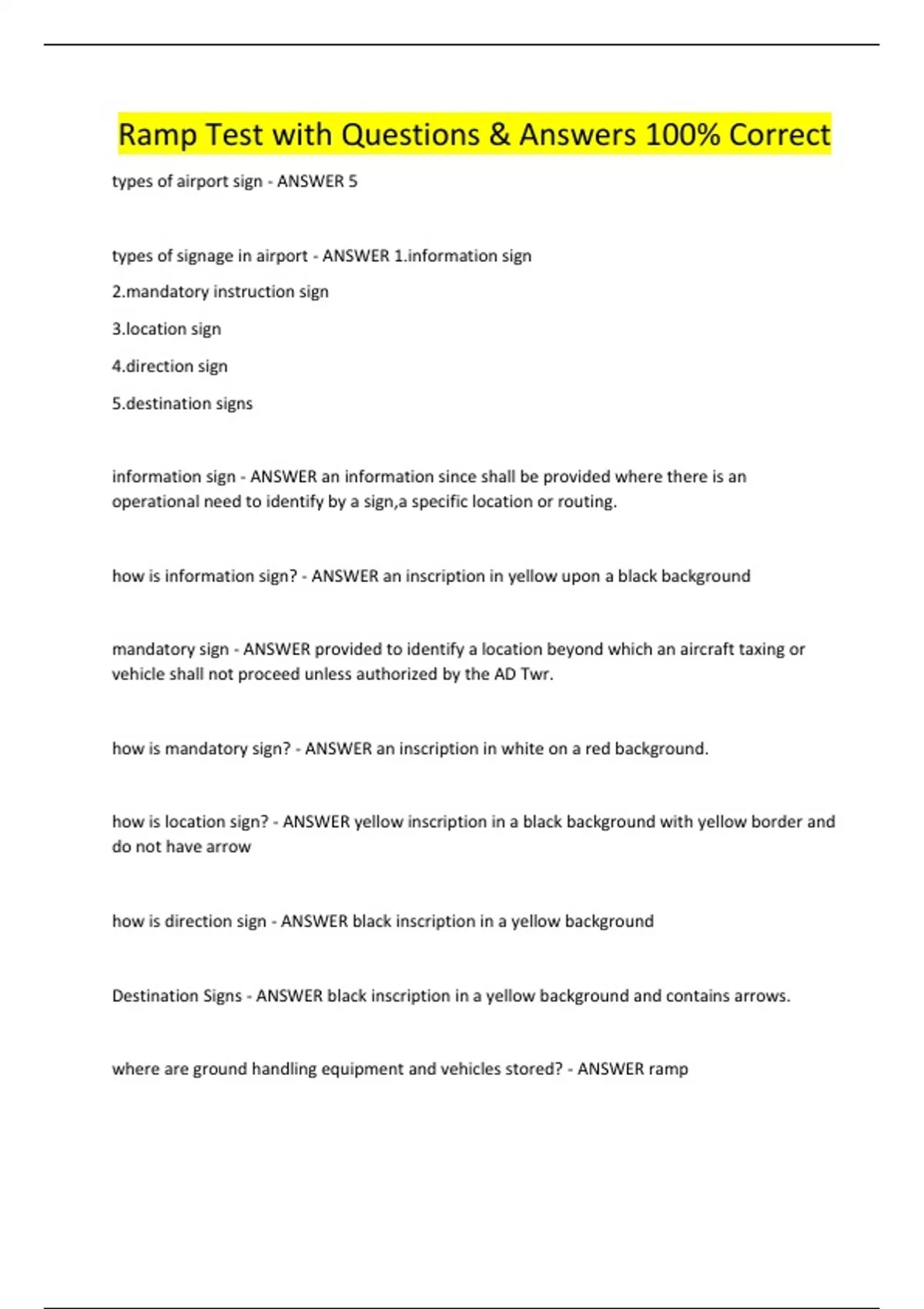 ramp test with questions answers 100 correct
