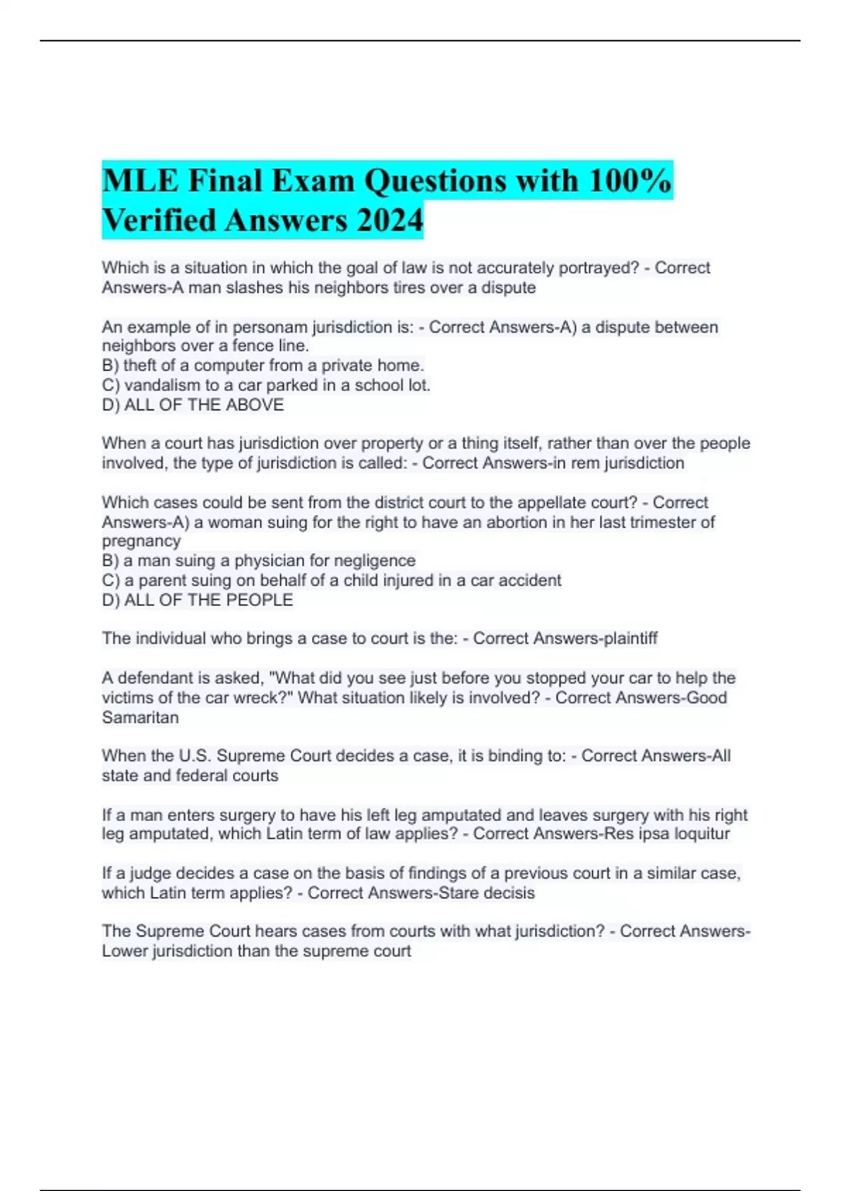 mle final exam questions with 100 verified answer