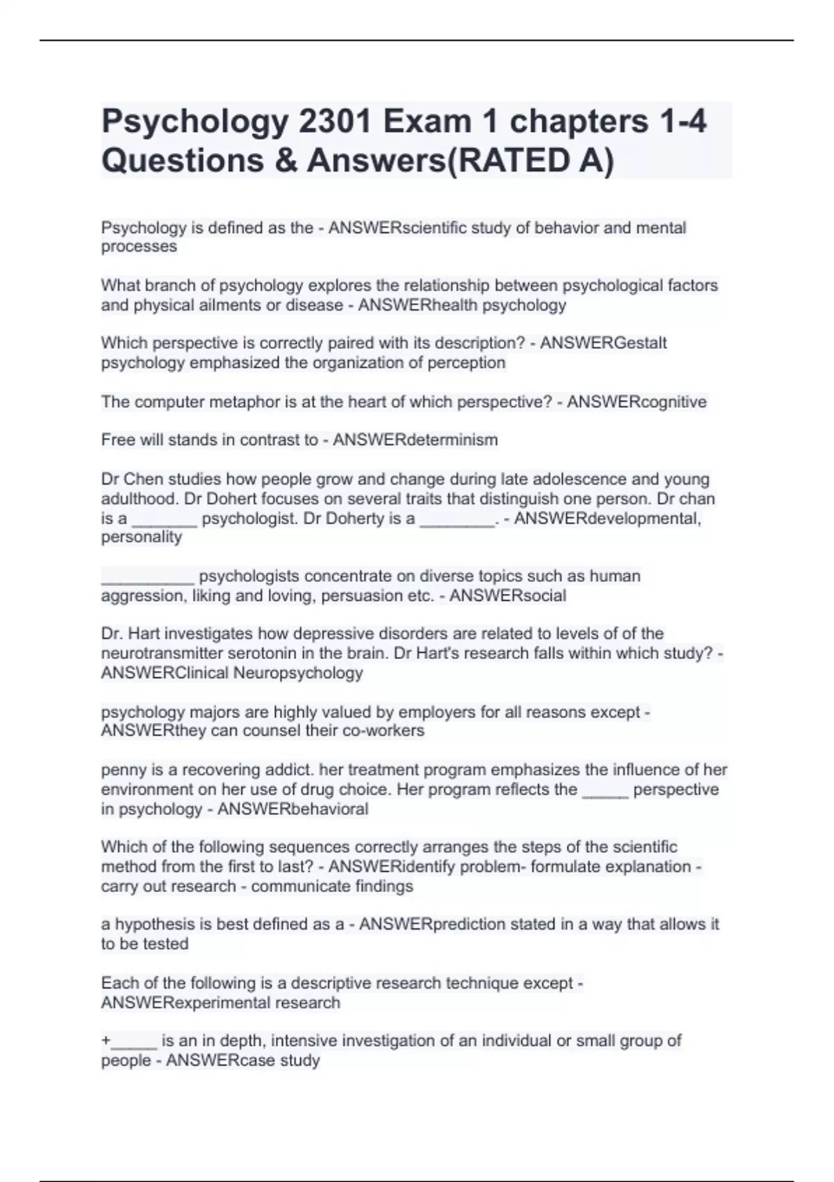 Psychology 2301 Exam 1 chapters 1-4 Questions & Answers(RATED A)