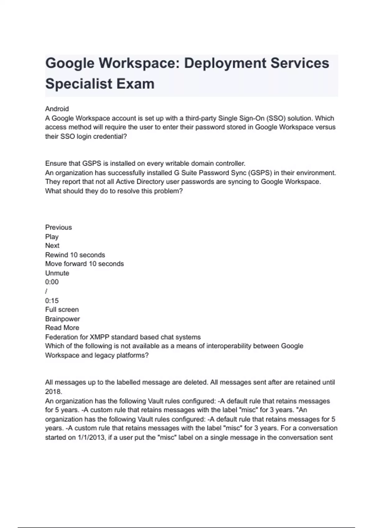 Google Workspace: Deployment Services Specialist Exam 2024 with complete solution( A+ GRADED 100% VERIFIED).