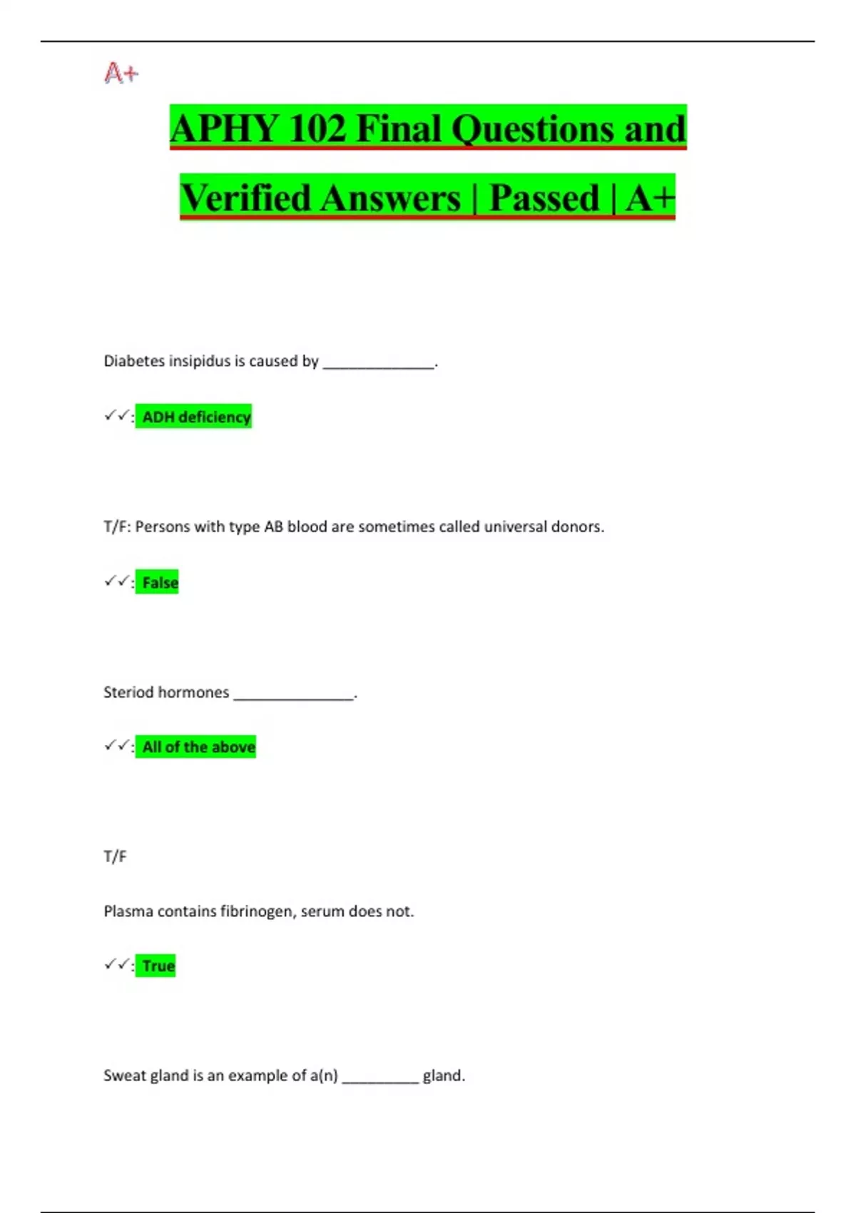 APHY 102 Final Questions and Verified Answers | Passed | A+