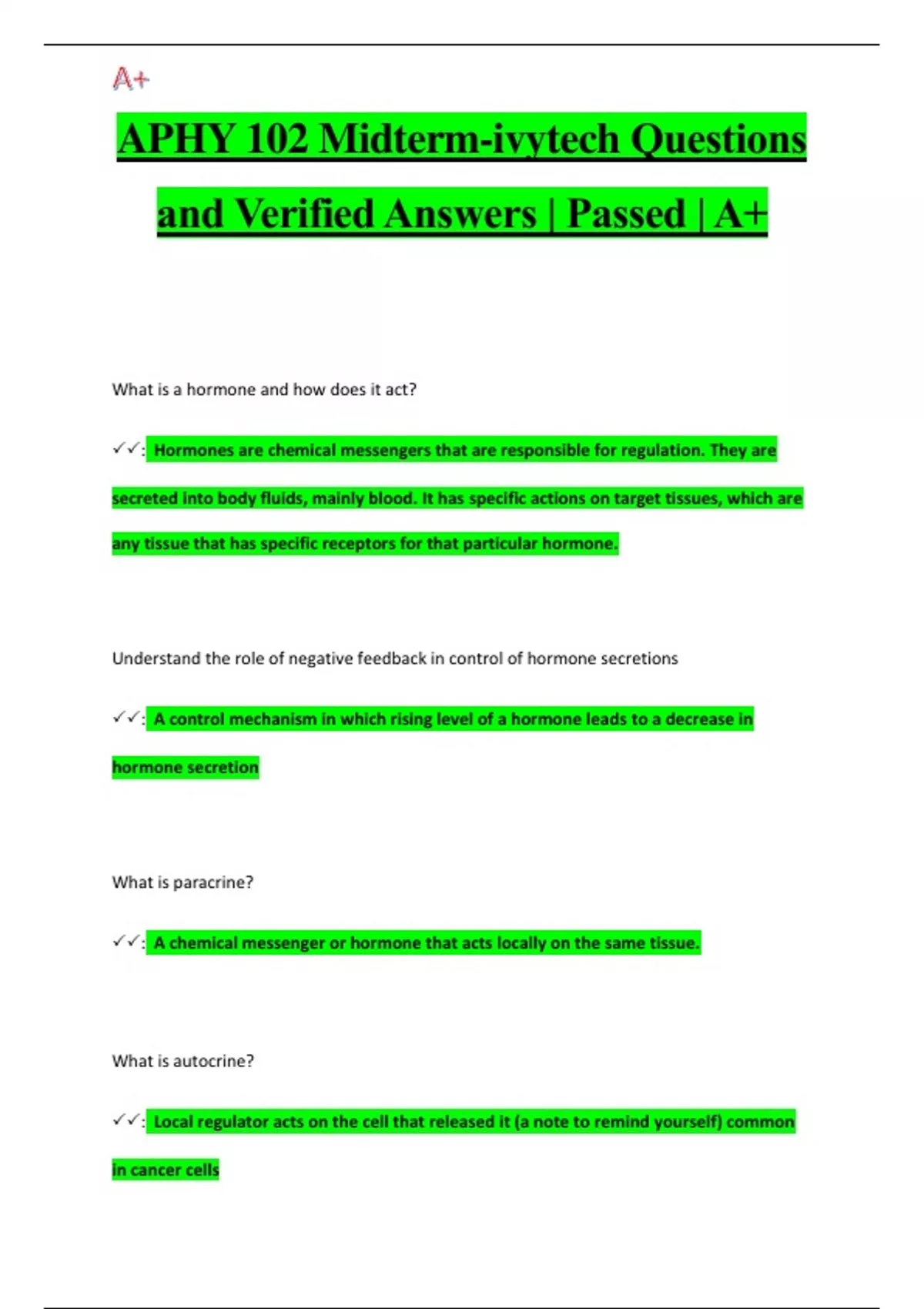 APHY 102 Midterm-ivytech Questions and Verified Answers | Passed | A+