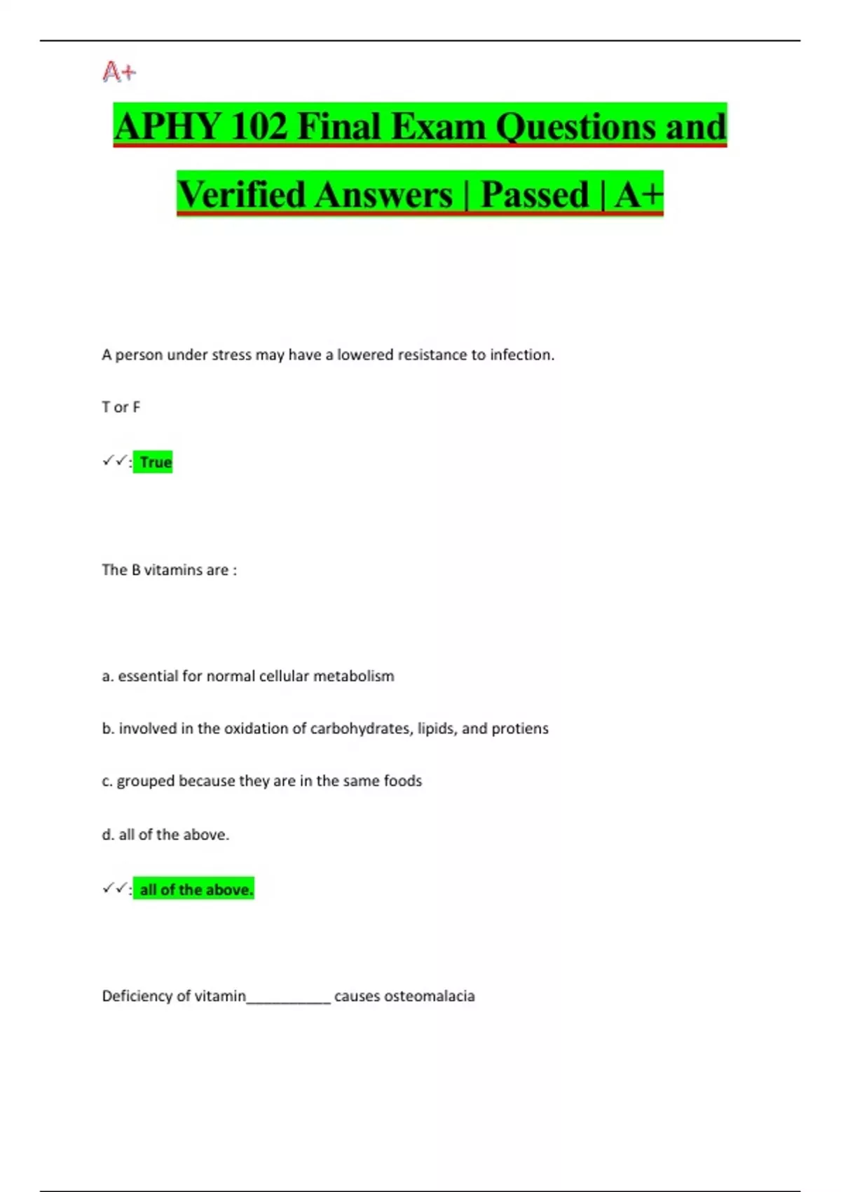 APHY 102 Final Exam Questions and Verified Answers | Passed | A+