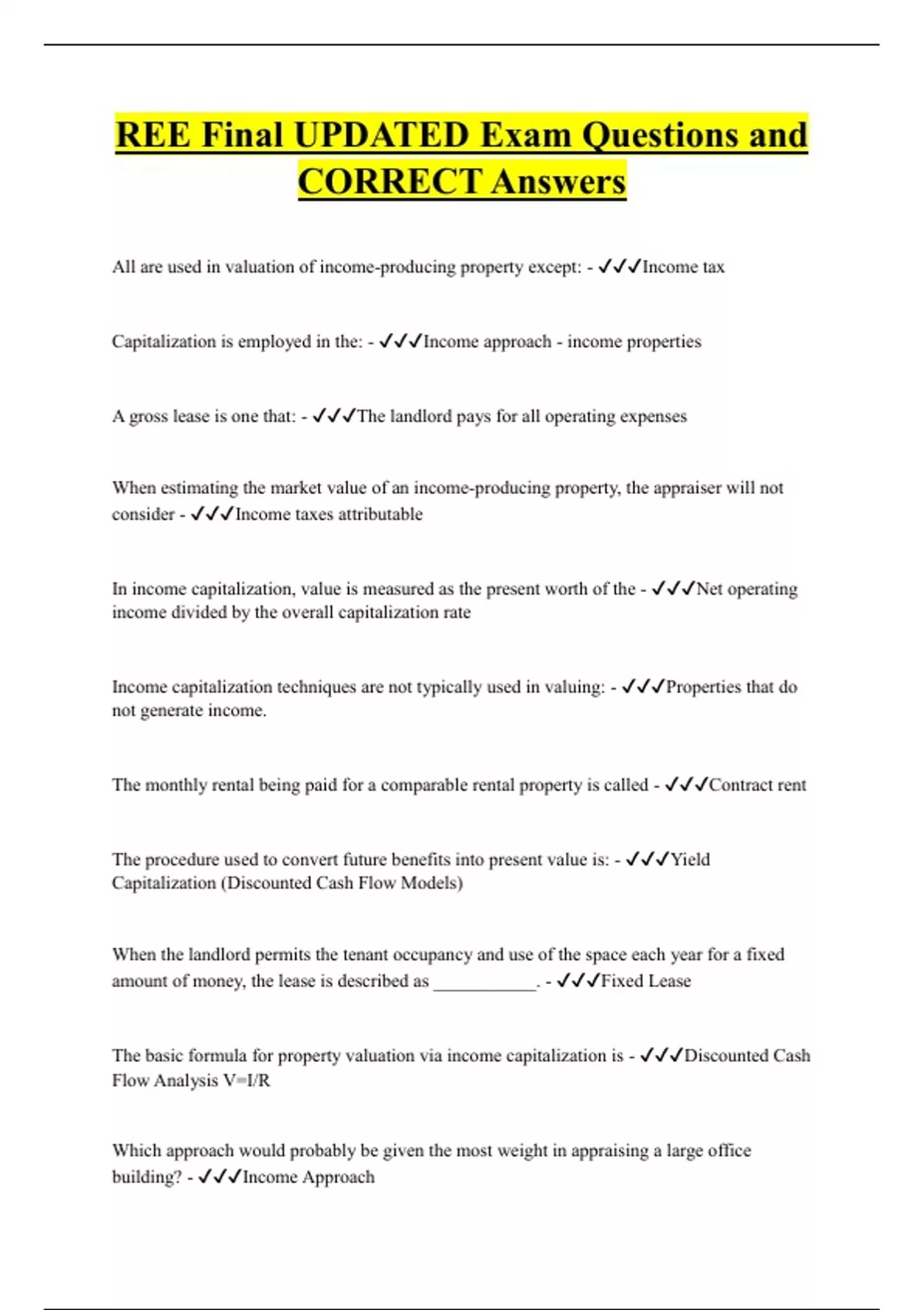 REE Final UPDATED Exam Questions and CORRECT Answers