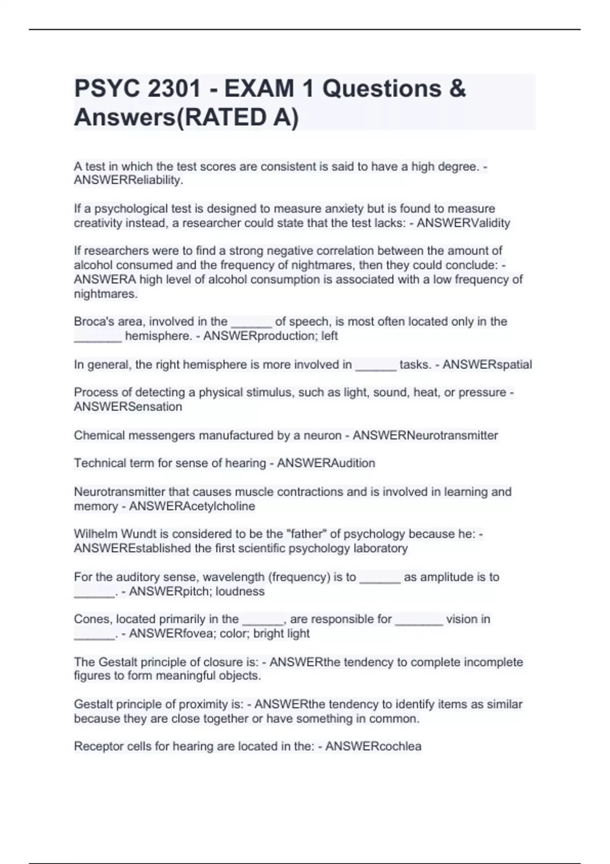 PSYC 2301 - EXAM 1 Questions & Answers(RATED A)