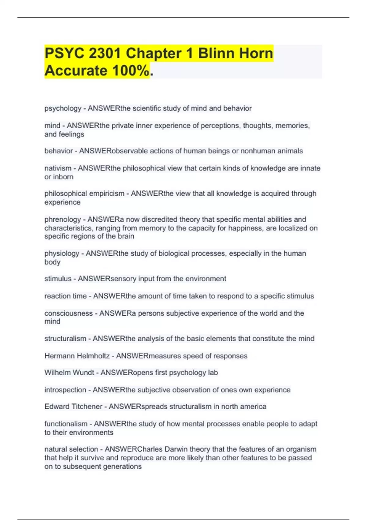 PSYC 2301 Chapter 1 Blinn Horn Accurate 100%.