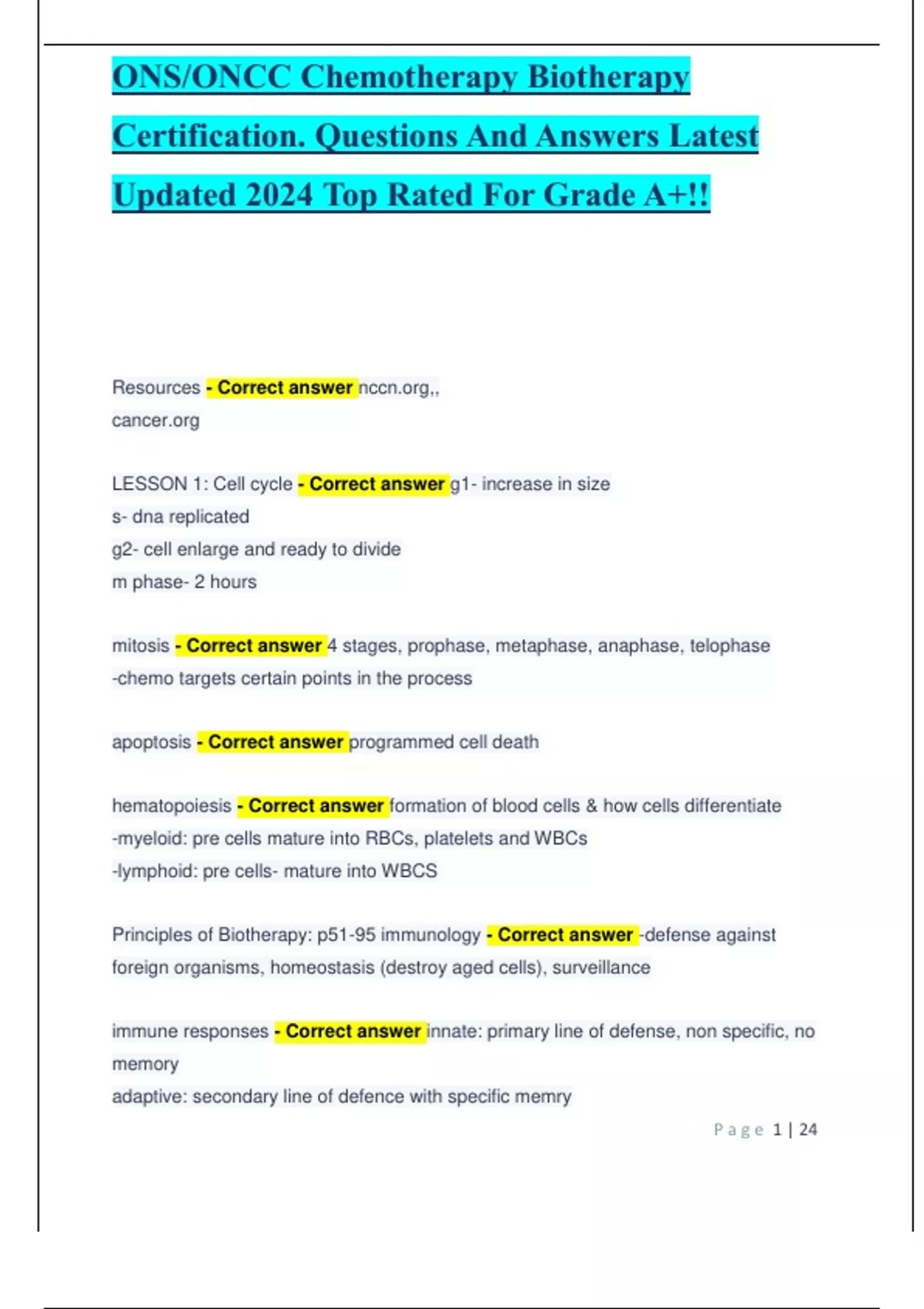 Onsoncc chemotherapy biotherapy certification questions and answers ||Latest 2024 ||Verified by experts||Answersheet