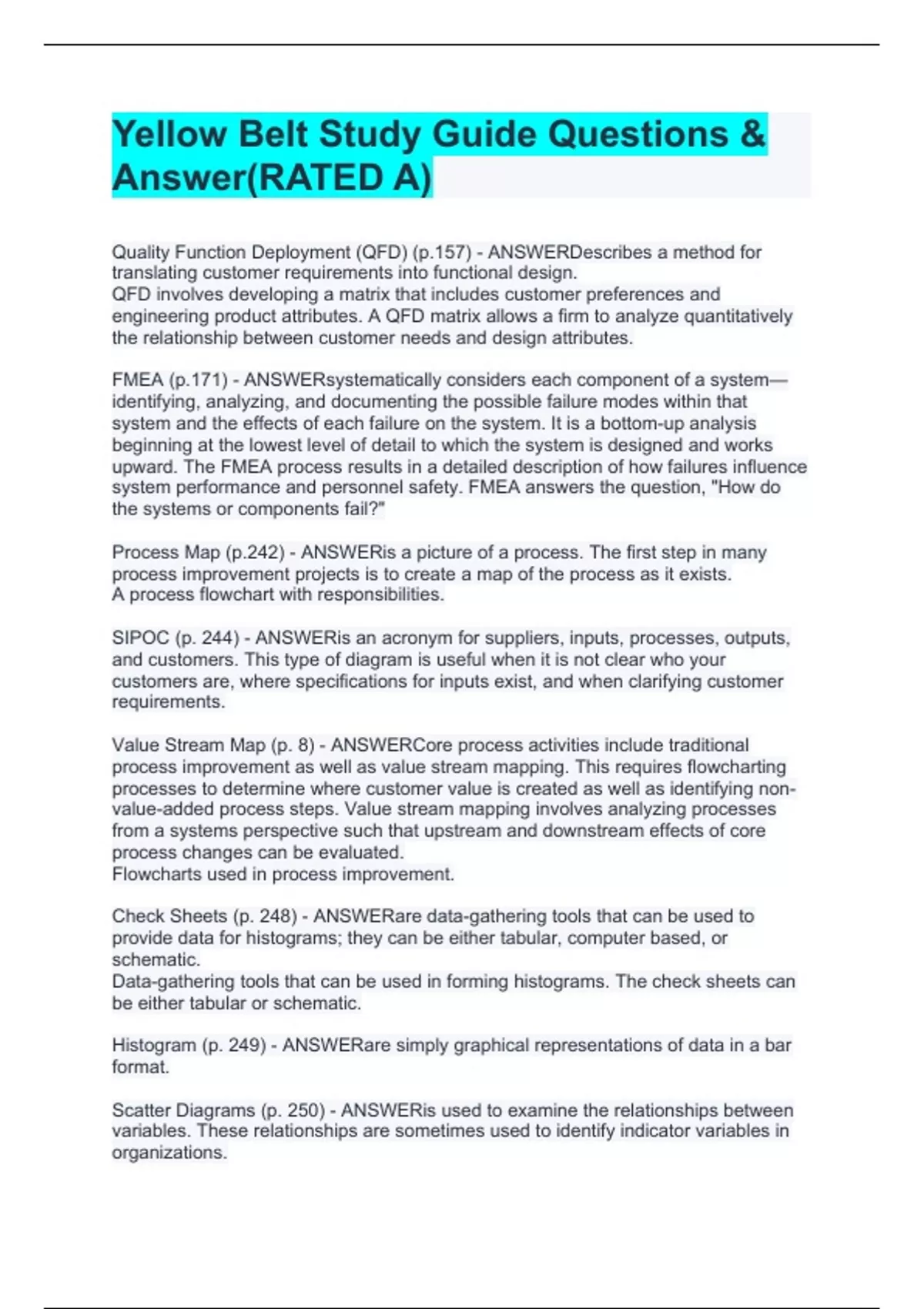 Yellow Belt Study Guide Questions & Answer(RATED A)