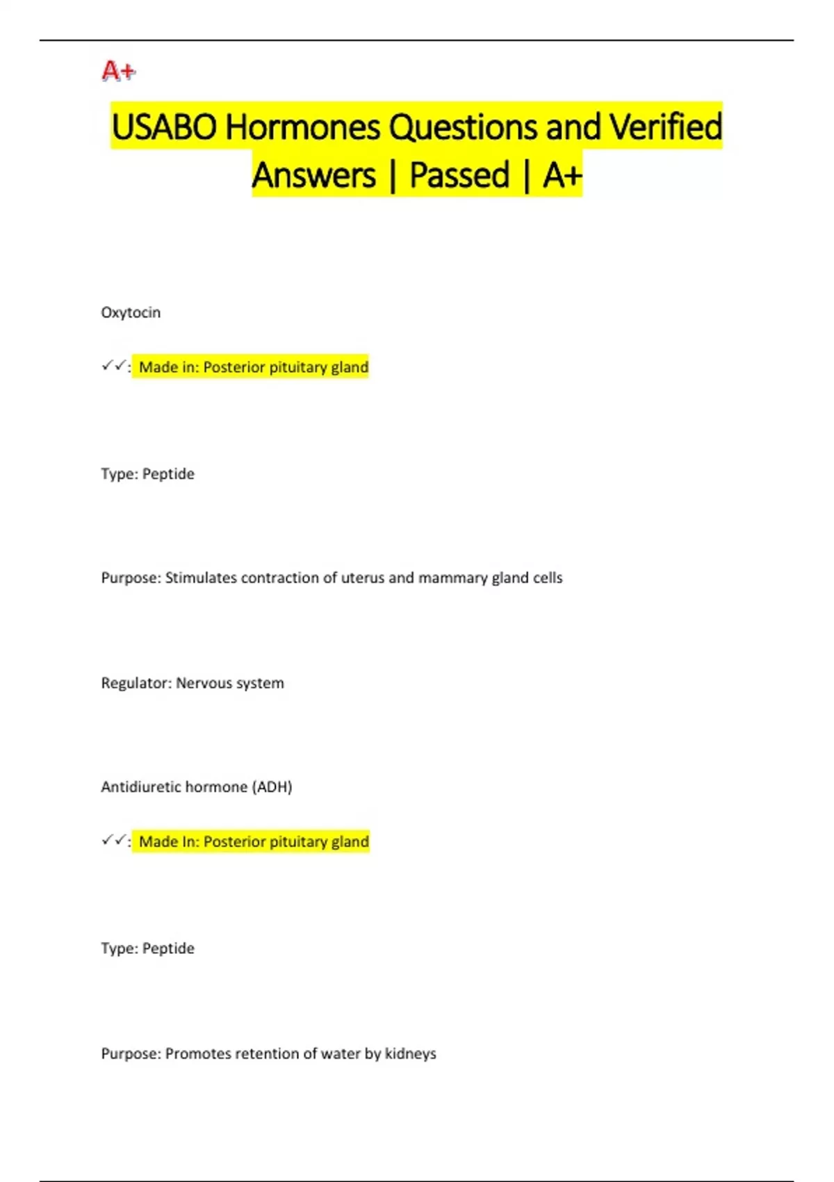 USABO Hormones Questions and Verified Answers | Passed | A+