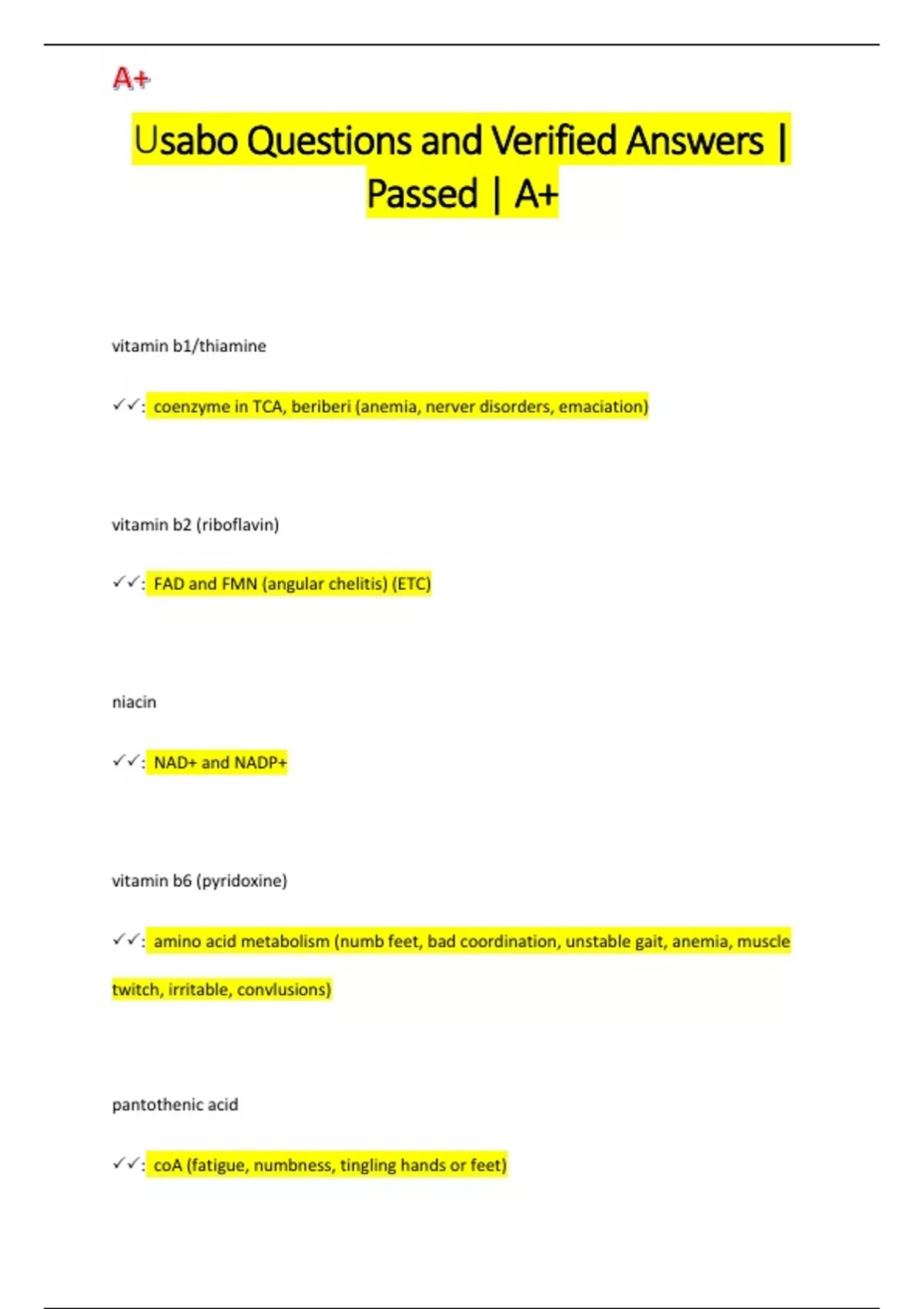 Usabo Questions and Verified Answers | Passed | A+