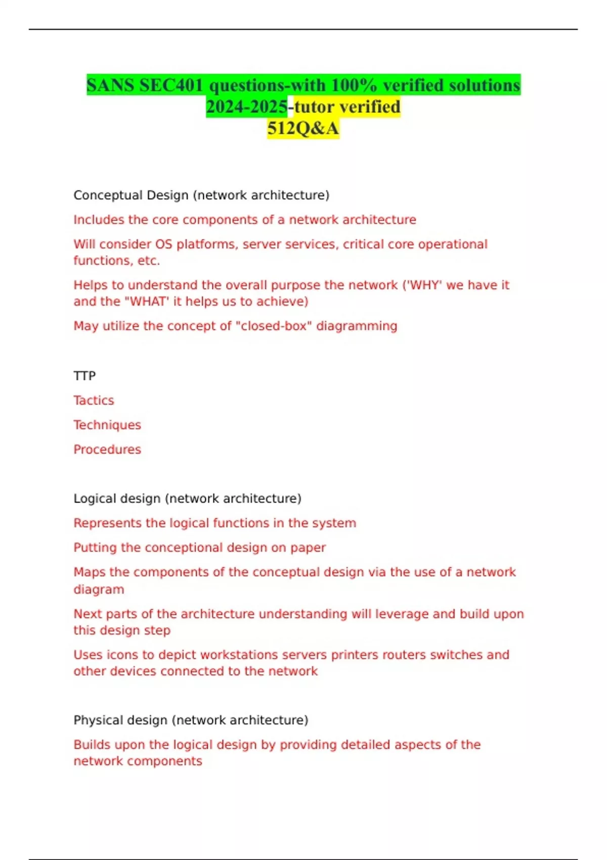 SANS SEC401 questions-with 100% verified solutions -tutor verified