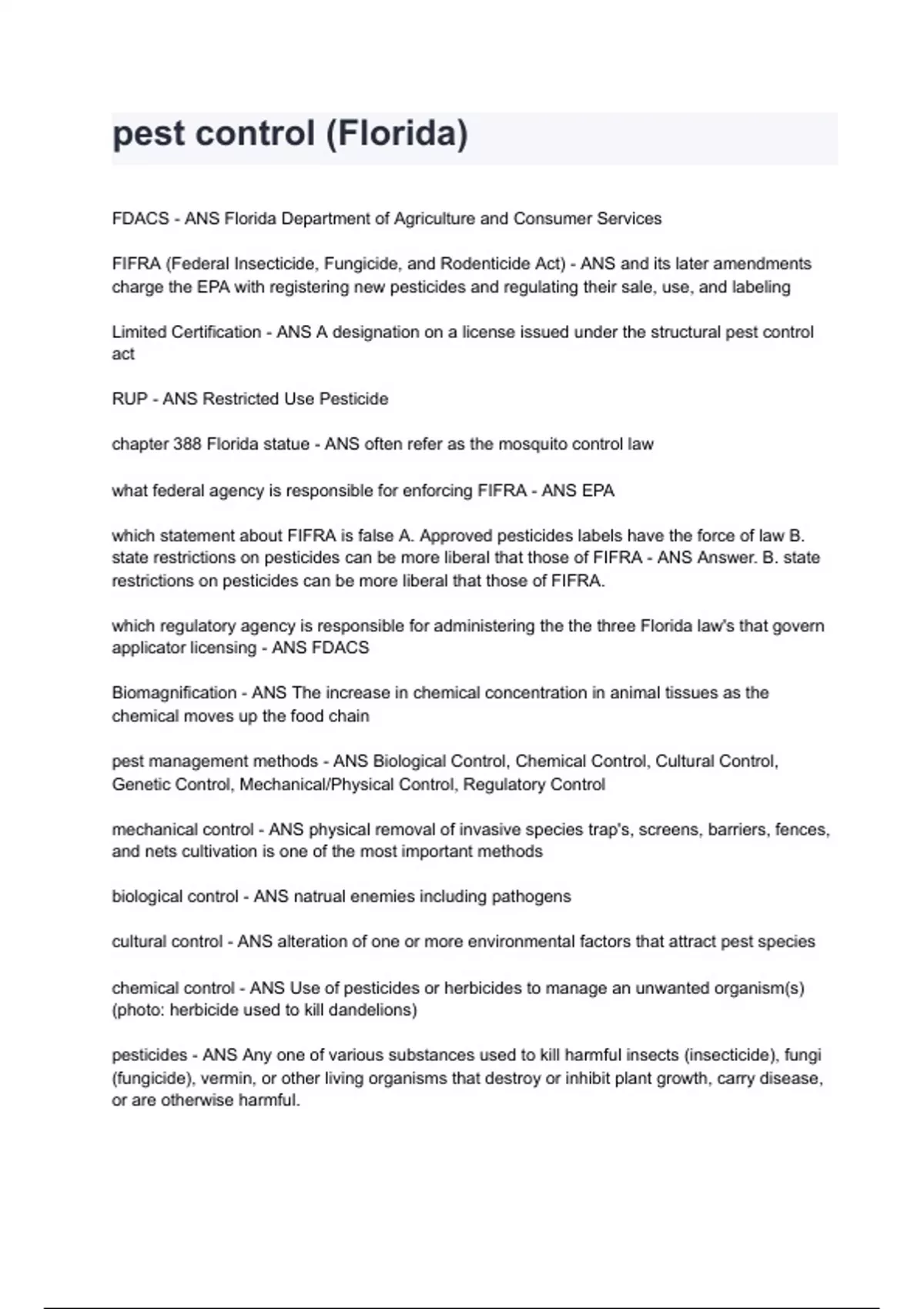 pest control (Florida) Exam 2024/2025 Questions With Completed & Verified Solutions.