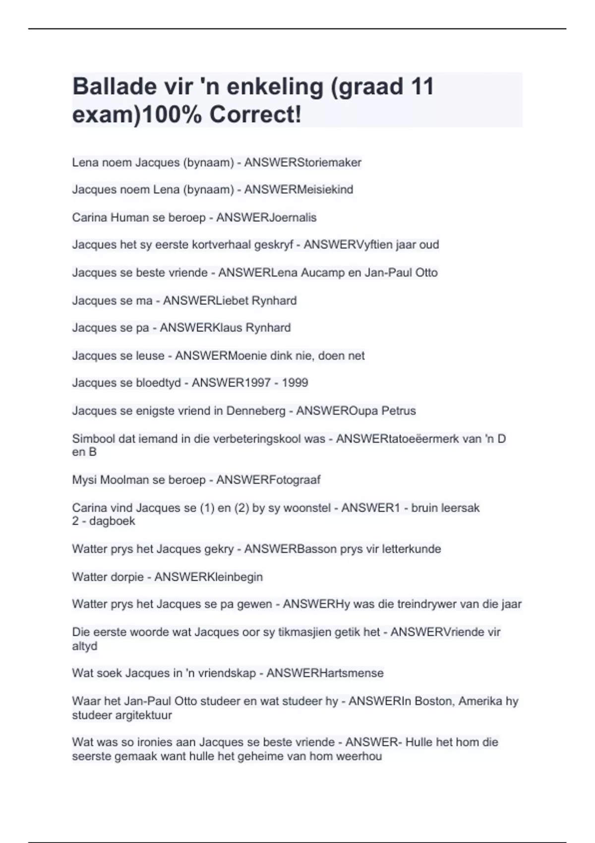 Ballade vir 'n enkeling (graad 11 exam)100% Correct!